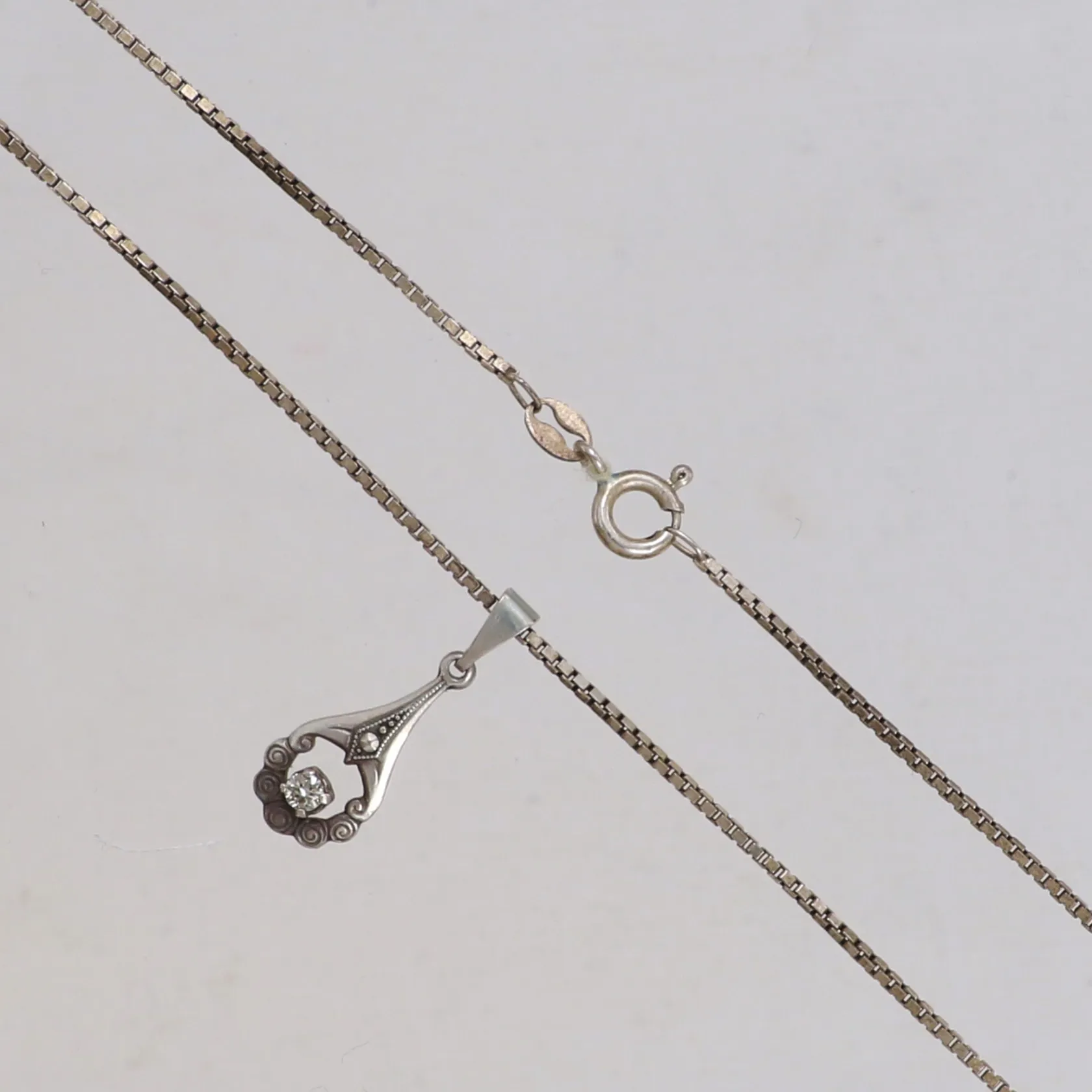 Kedja Venezia med hänge, längd 39cm, bredd 1,1mm, hängets mått ca 22,5mm inklusive ögla, bredd 8,5mm, 835-925/1000 silver Vikt: 3,7 g.