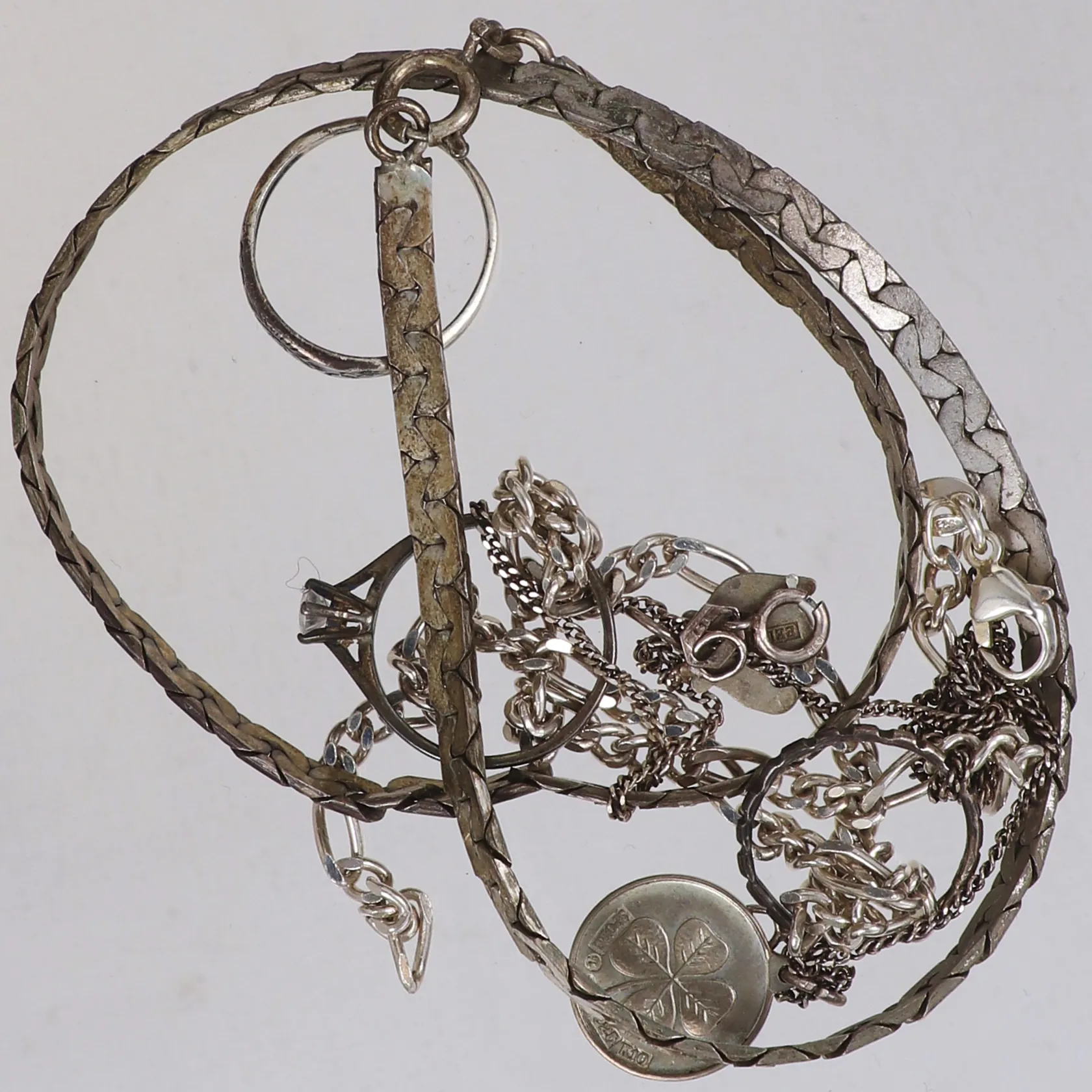 Diverse silver, sten, gravyr, skadat, defekt, silver Vikt: 32,2 g.
