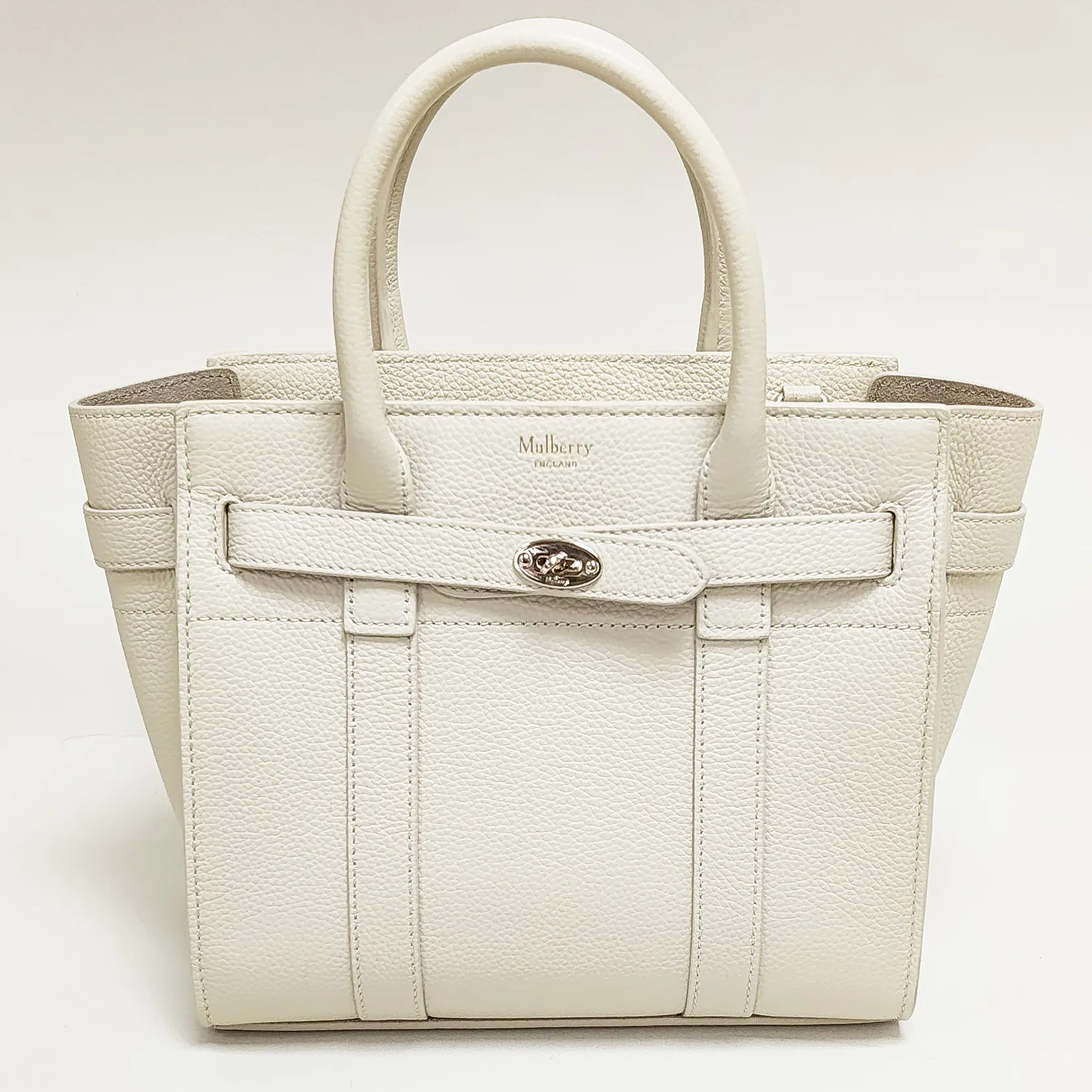 Väska Mulberry Mini Zipped Bayswater, Chalk Small Classic Grain läder, mått 23x21x12,5cm, beslag i gulmetall, ett fack, avtagbar axelrem, kvitto från NK 21-02-17, inga övriga tillbehör.