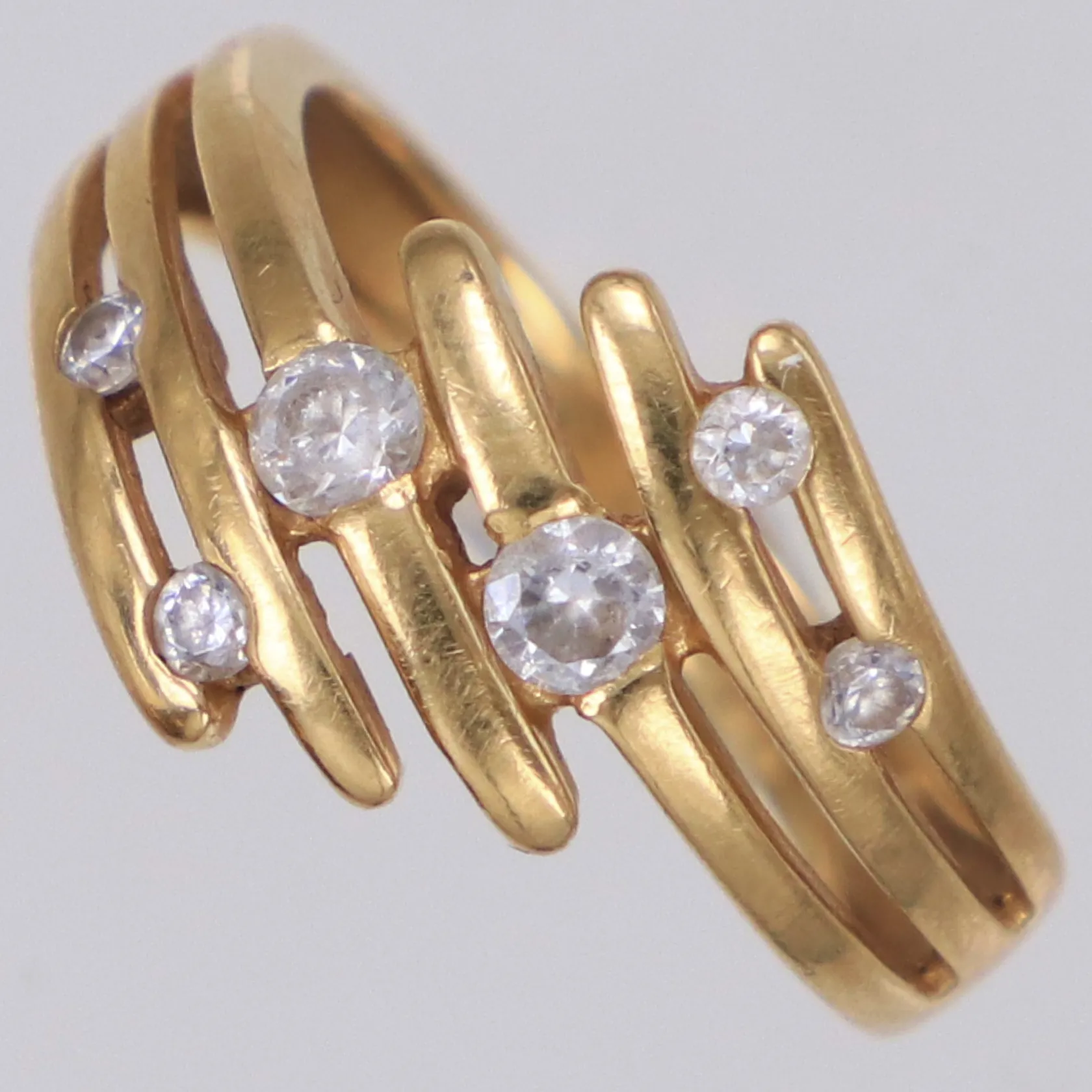 Ring med vita stenar, stl:17¼, bredd 2,6-13mm, 18K Vikt: 4,5 g.