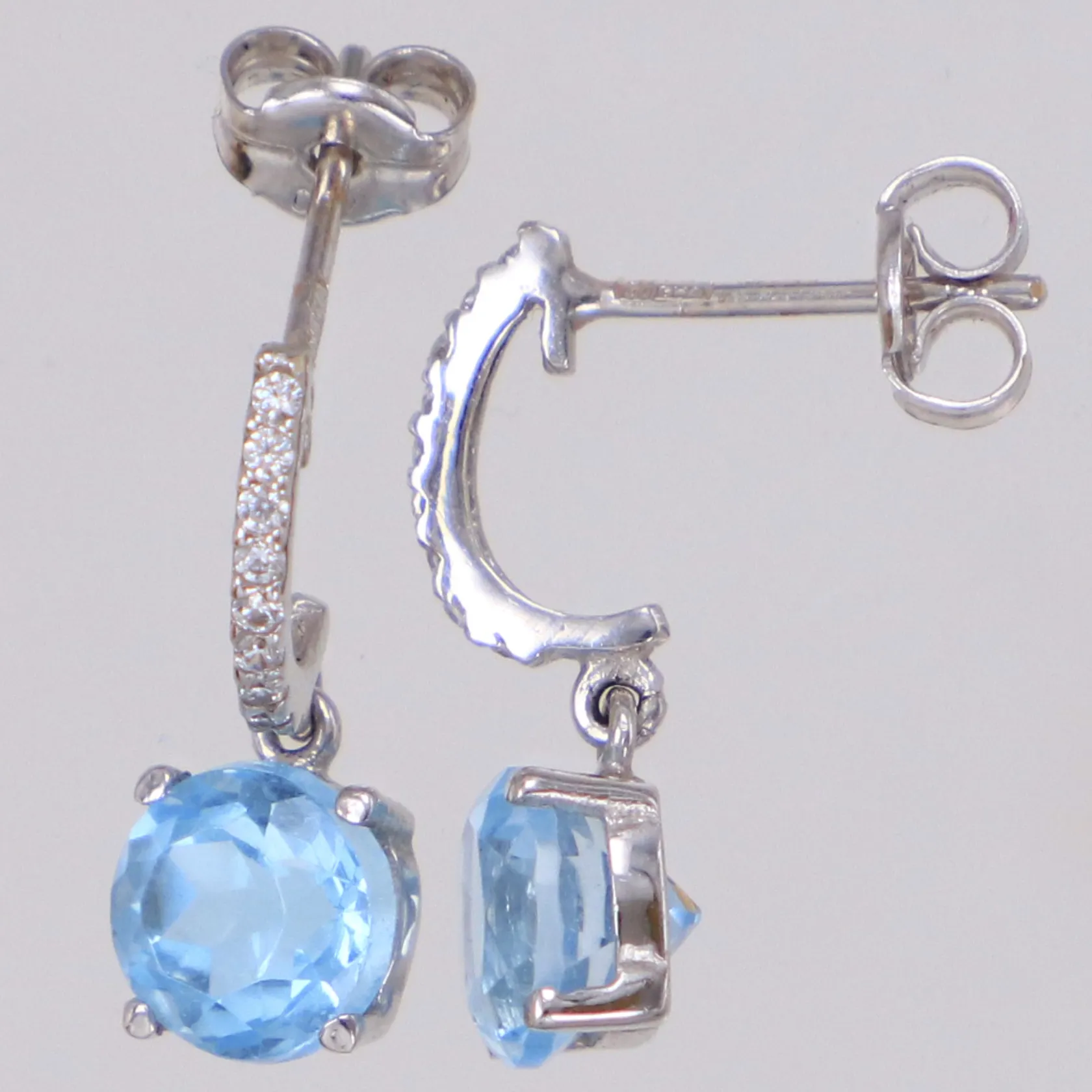 Ett par örhängen med vita och blå stenar möjligen topas, längd 17mm, bredd 6mm, GHA, vitguld, 18K Vikt: 1,7 g.
