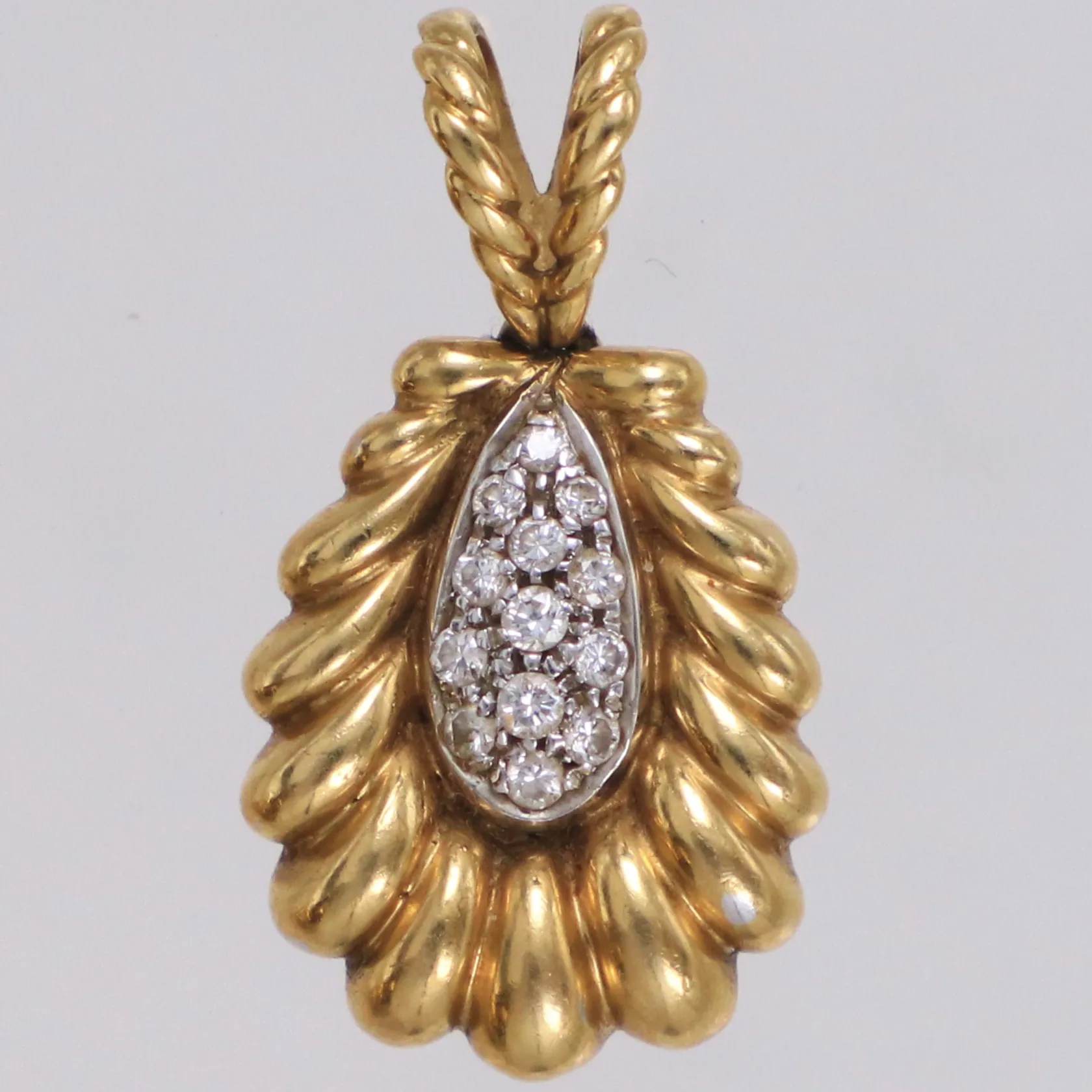 Hänge med diamanter 13xca0,01-0,02ct, längd 26,8mm, bredd 14,8mm, tvåfärgat, skadade klor, 18K Vikt: 4,9 g.