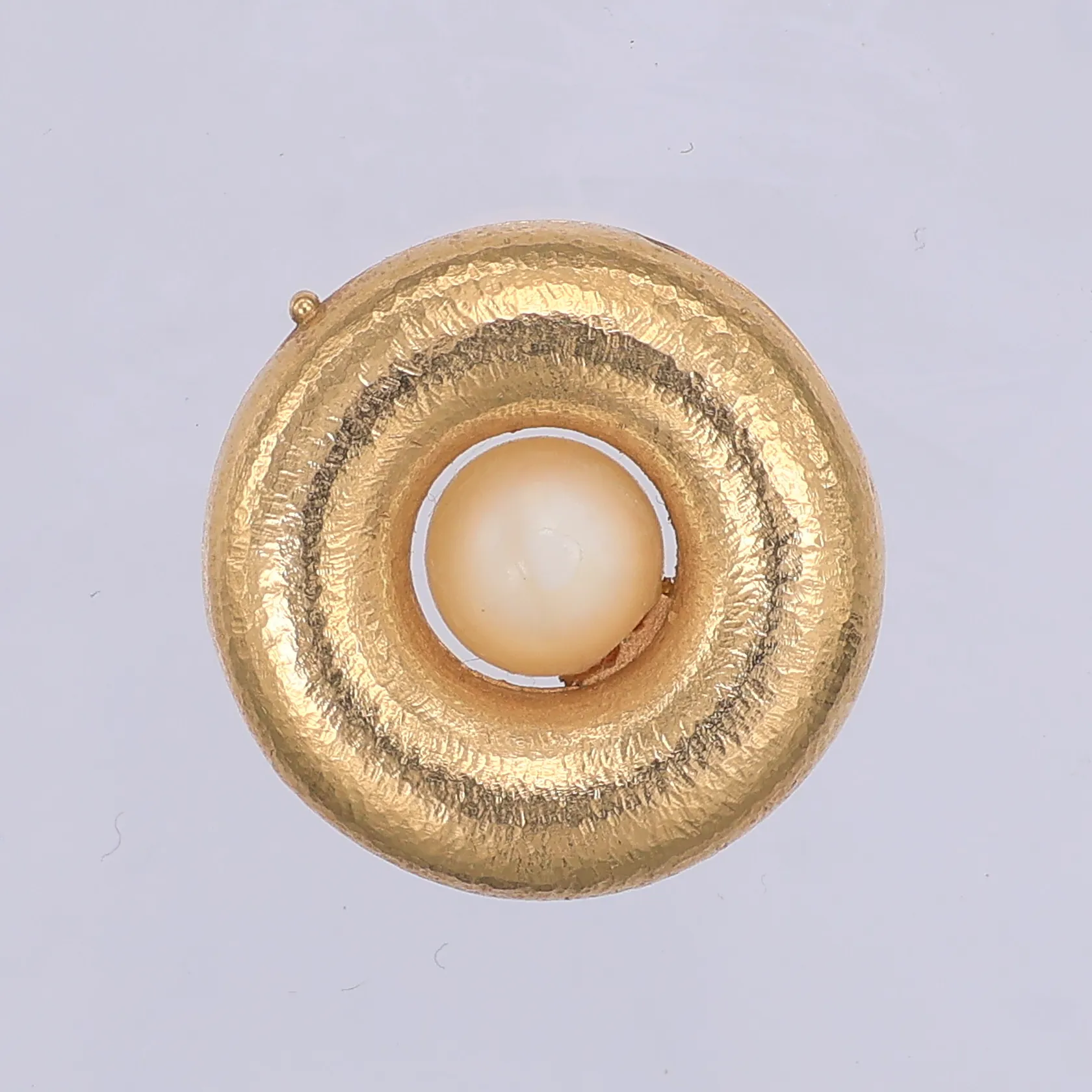 Lås av Ole Lynggaard för två rader av collier med dobbar, med odlad pärla i mitten Ø20mm, stämplat Ole L, 18K Vikt: 10,1 g.