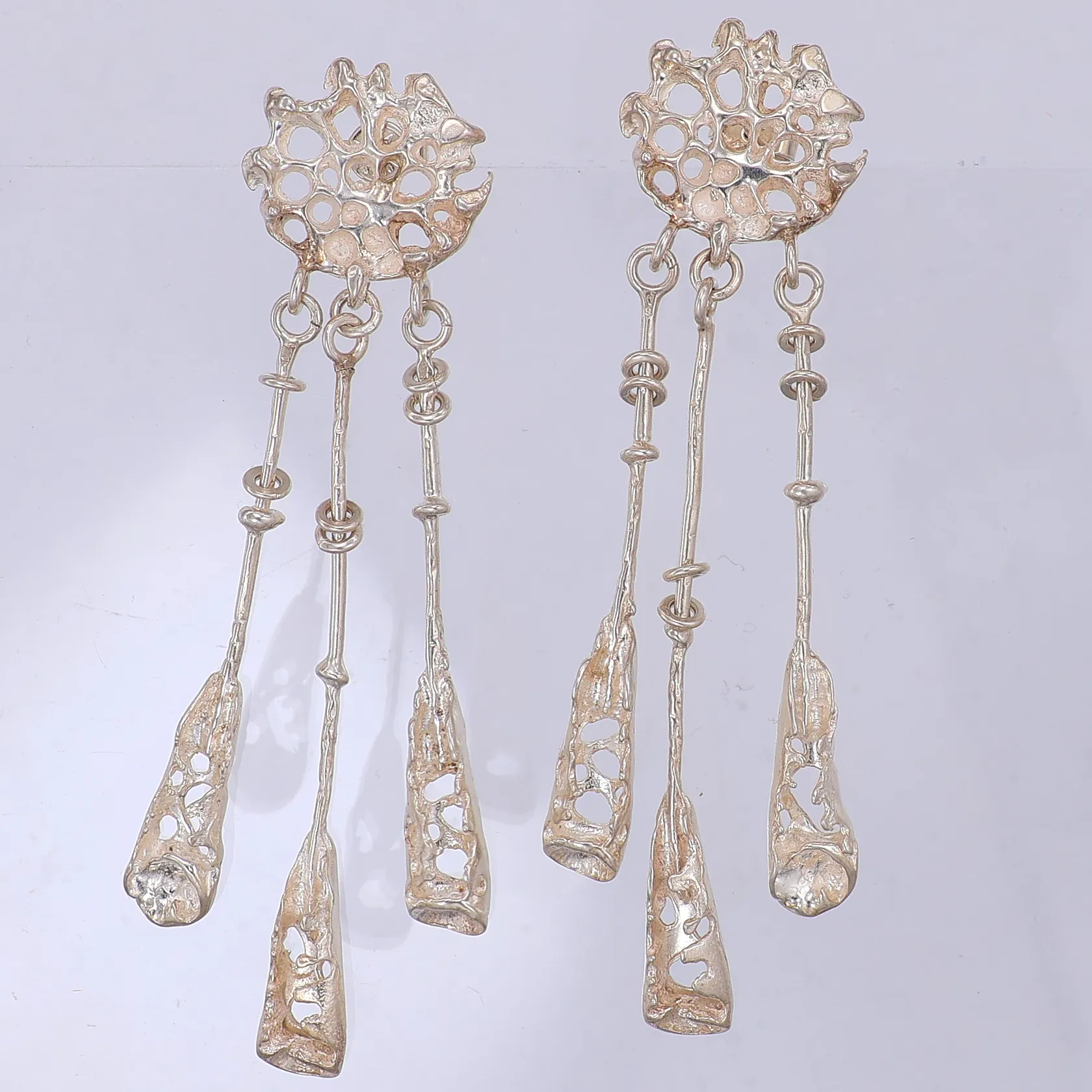 Örhängen modell Tundra från Juhls i Kautokeino, 85mm, bredd 20mm, 925/1000 silver, fint skick, nypris ca 3500kr Vikt: 22,4 g.