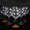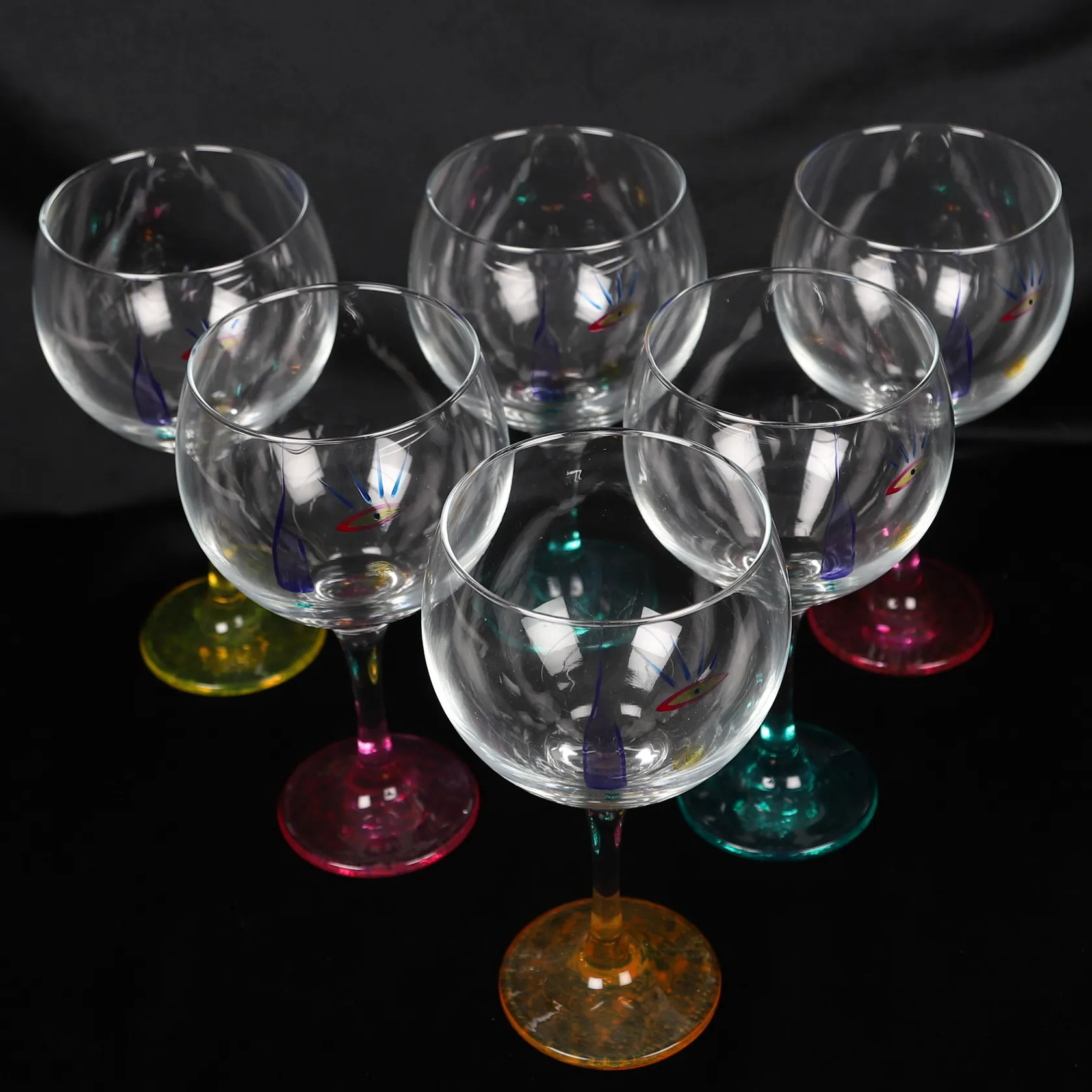 Sex Vinglas, Tommy Persson, klart och färgat glas samt målad dekor, höjd 20cm, smärre slitage.