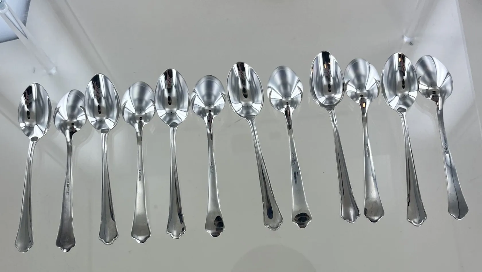 12 kaffeskedar, längd 12 cm, silver 830/1000 Vikt: 181,9 g.