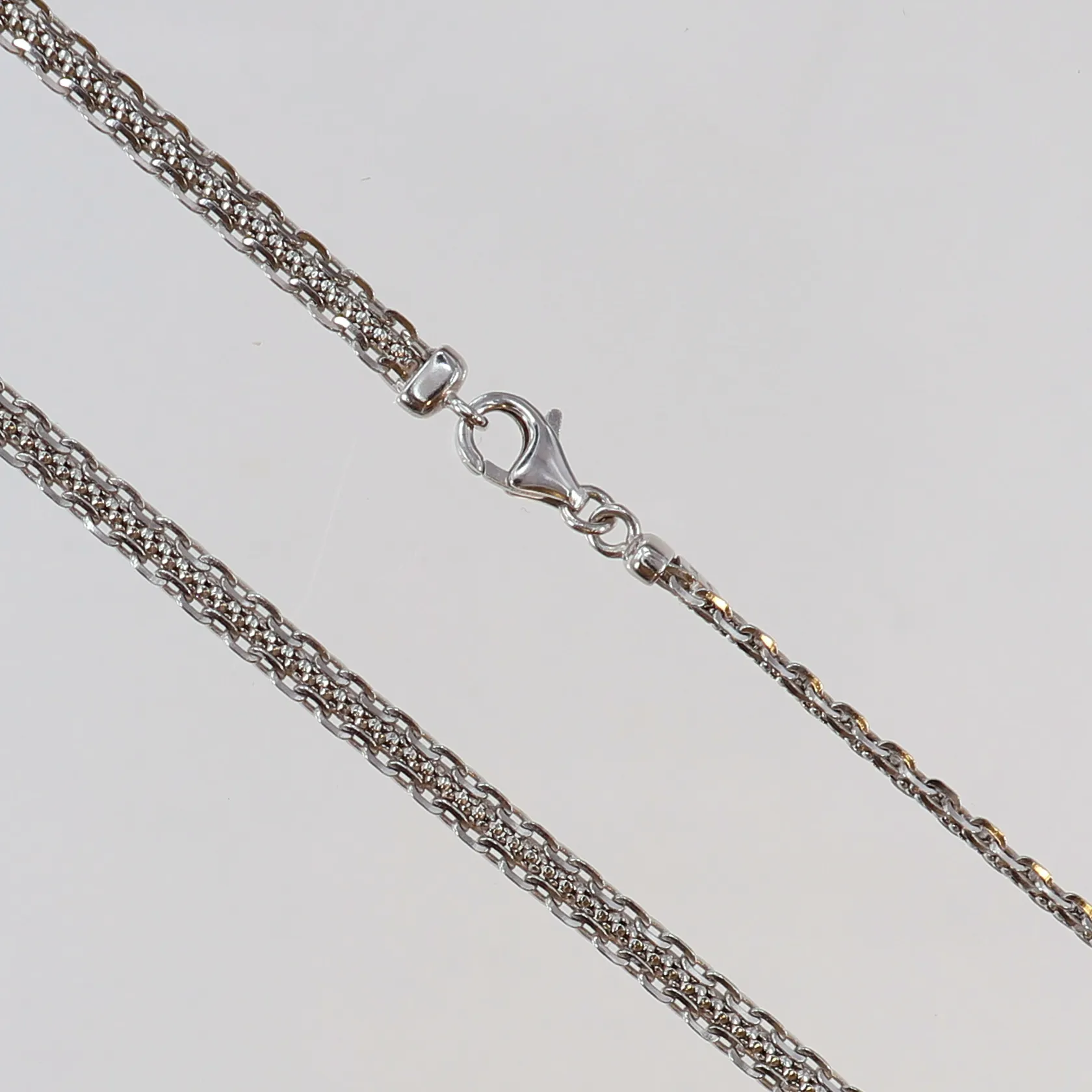 Collier fantasilänk, längd 45cm, bredd 3,3mm, vitguld 18K. Vikt: 10 g.