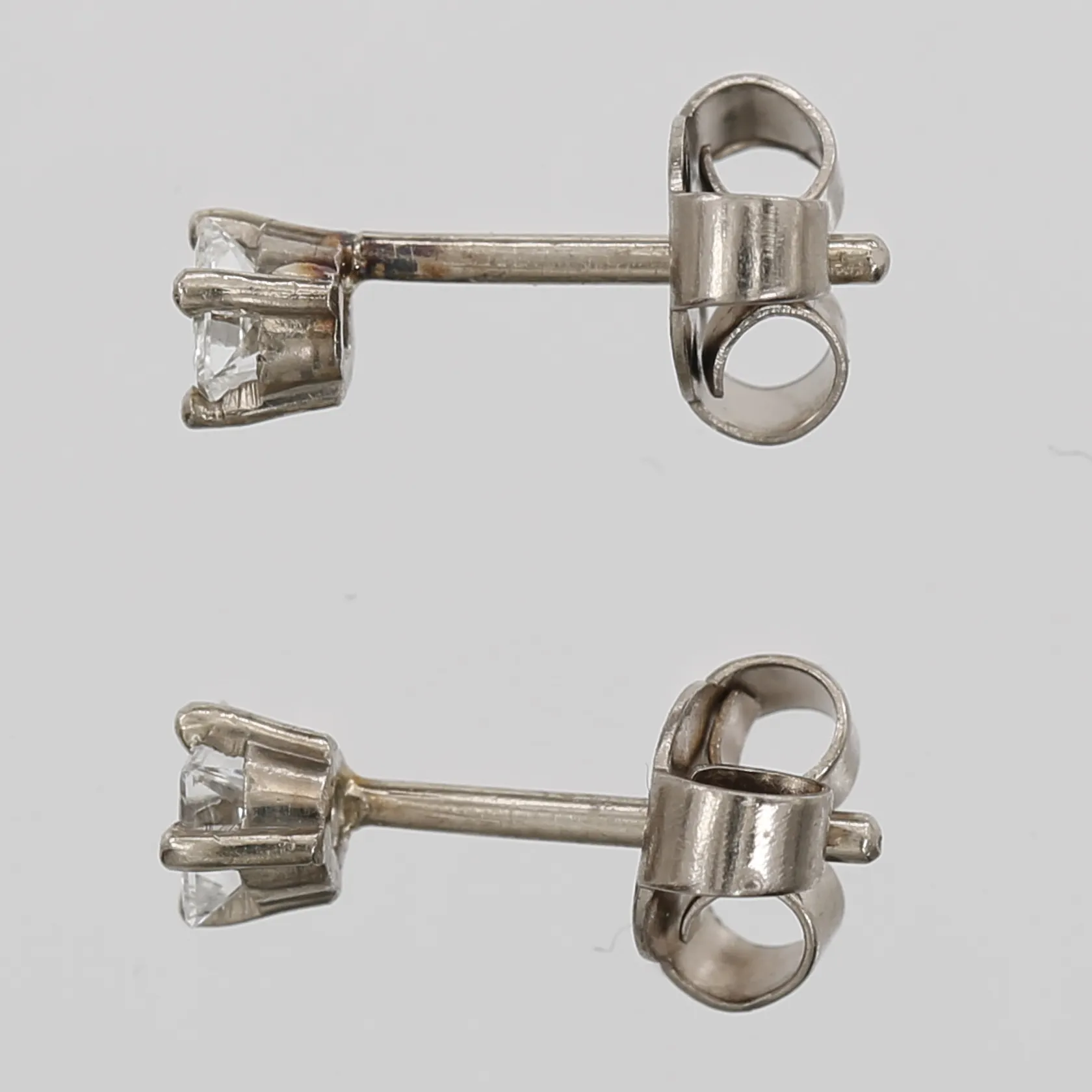 Ett par örhängen med prinsesslipade diamanter 2 x ca 0,15ct, 18K vitguld Vikt: 0,9 g.