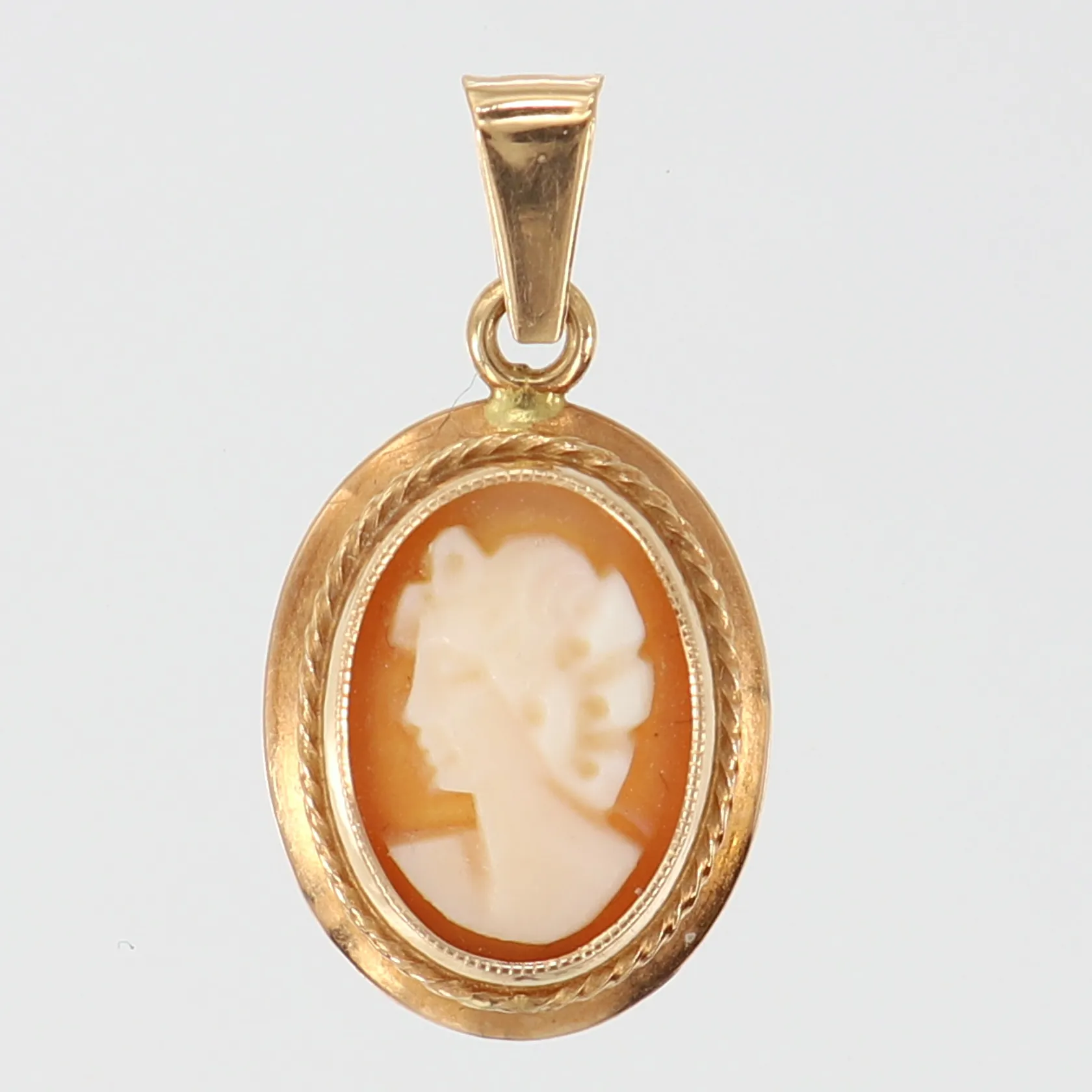 Hänge Camé, längd inkl ögla ca 21mm, bredd ca 11mm, 14K Vikt: 1 g.