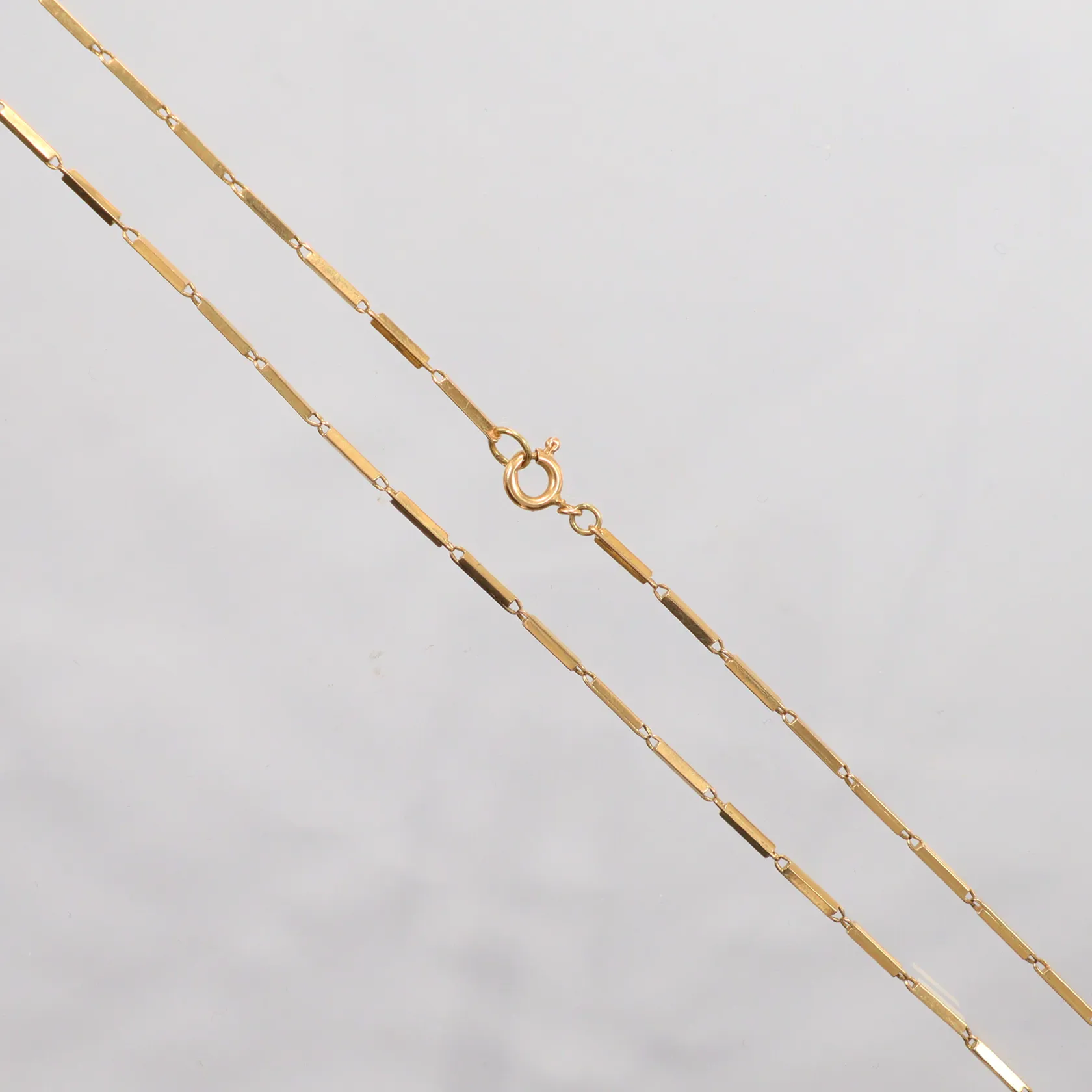 Kedja stavlänk, längd 45cm, bredd 1mm, 18K. Vikt: 8,7 g.