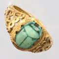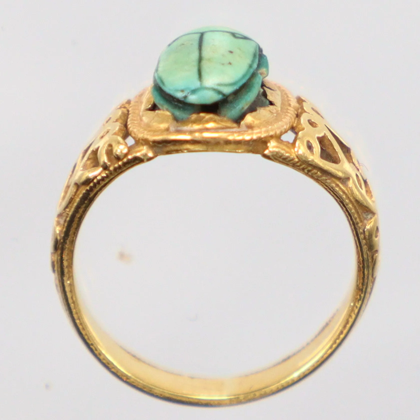 Ring med Skarabé och genombruten dekor, Ø15½, sten något löst infattad, 18K. Vikt: 3,4 g.