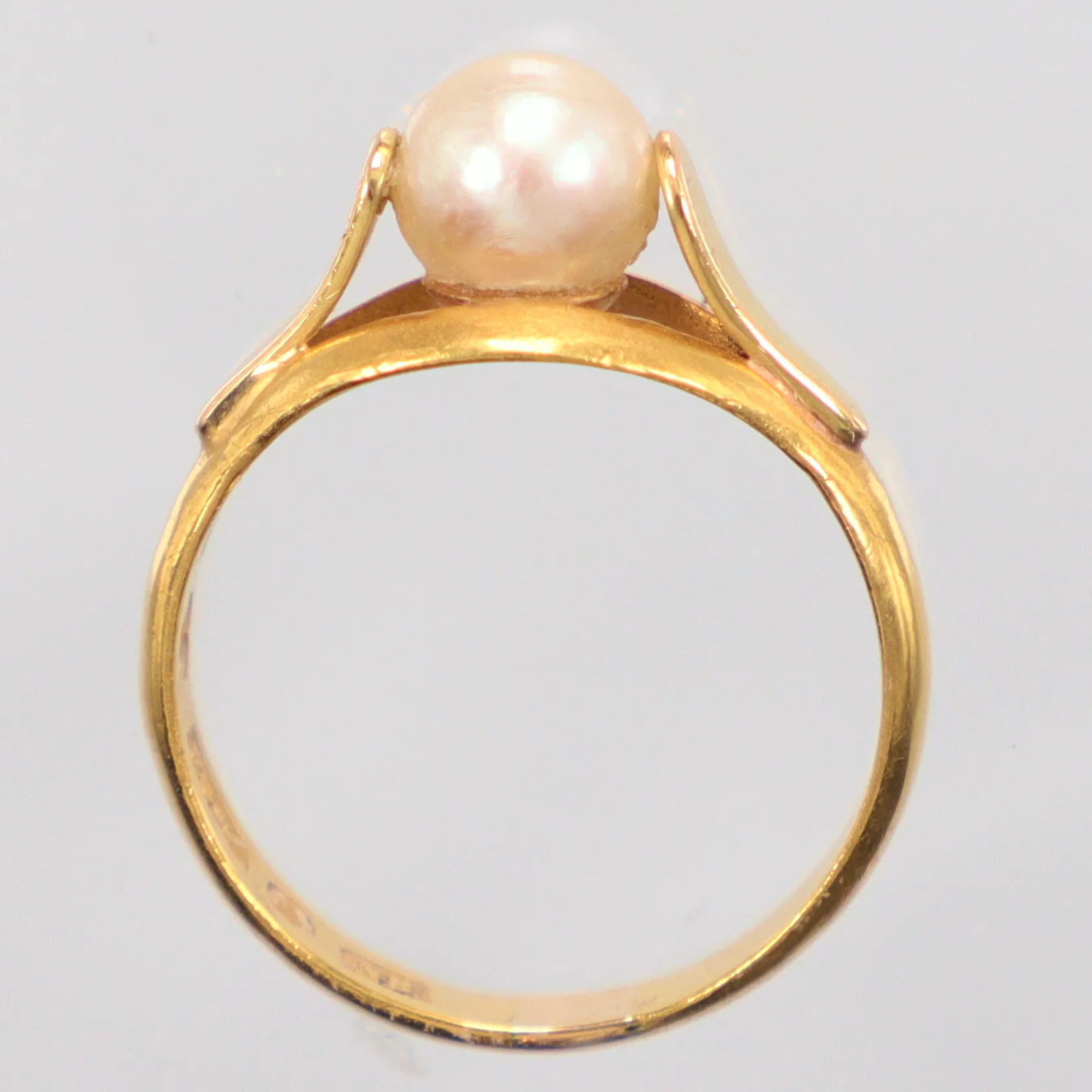 Ring med pärla Ø19¾, 23K. Vikt: 5,5 g.