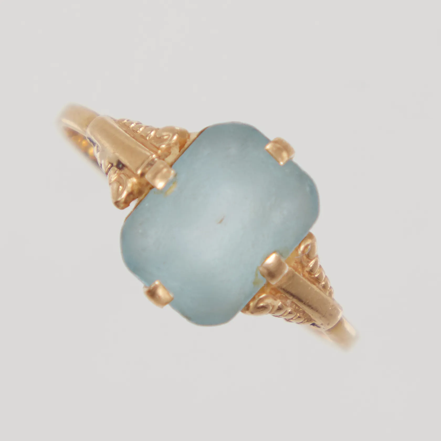 Ring med blå sten, stl 17, bredd 1,2-10mm, kraftigt sliten sten, 18K, Vikt: 1,7 g.