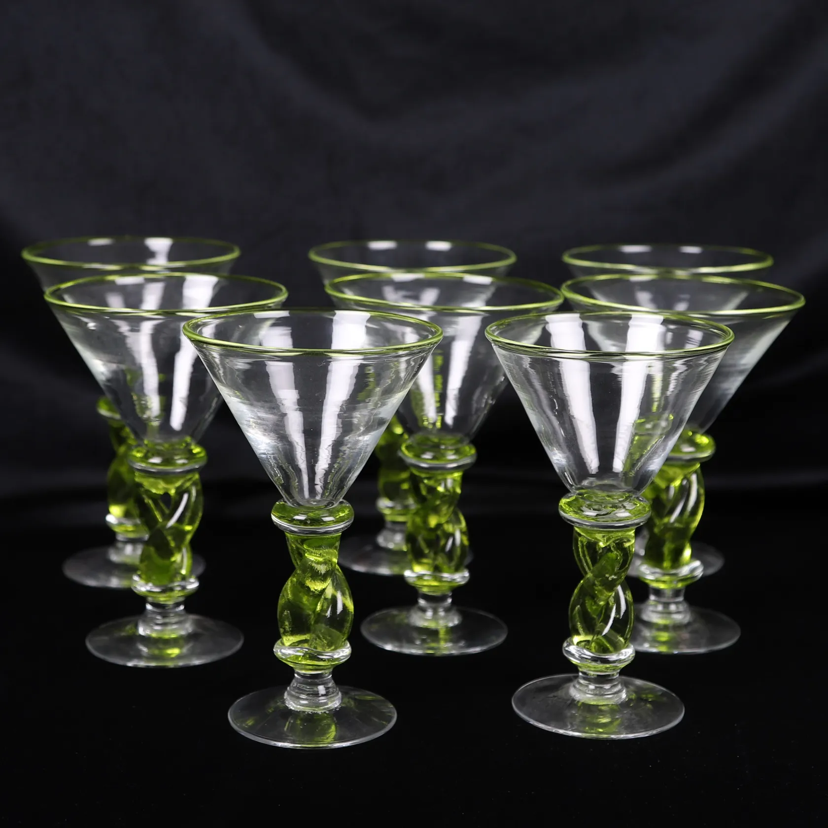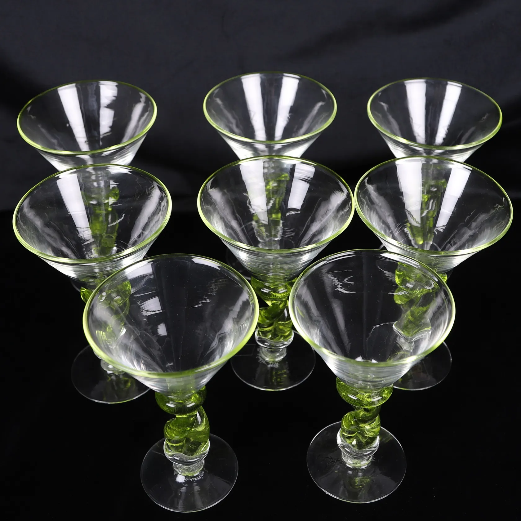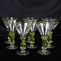 Åtta Cocktailglas, flätad stomme, grönt och klart glas, AM Studio, höjd 16,5cm, smärre slitage.