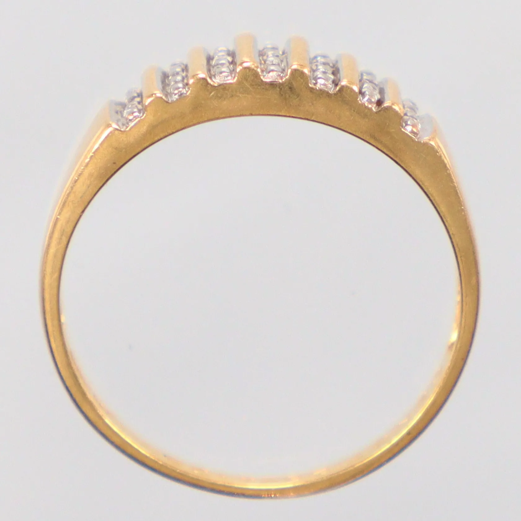 Ring diamanter 21 x ca 0,01 ct, Ø19¼, gravyr, 18K. Vikt: 3,4 g.
