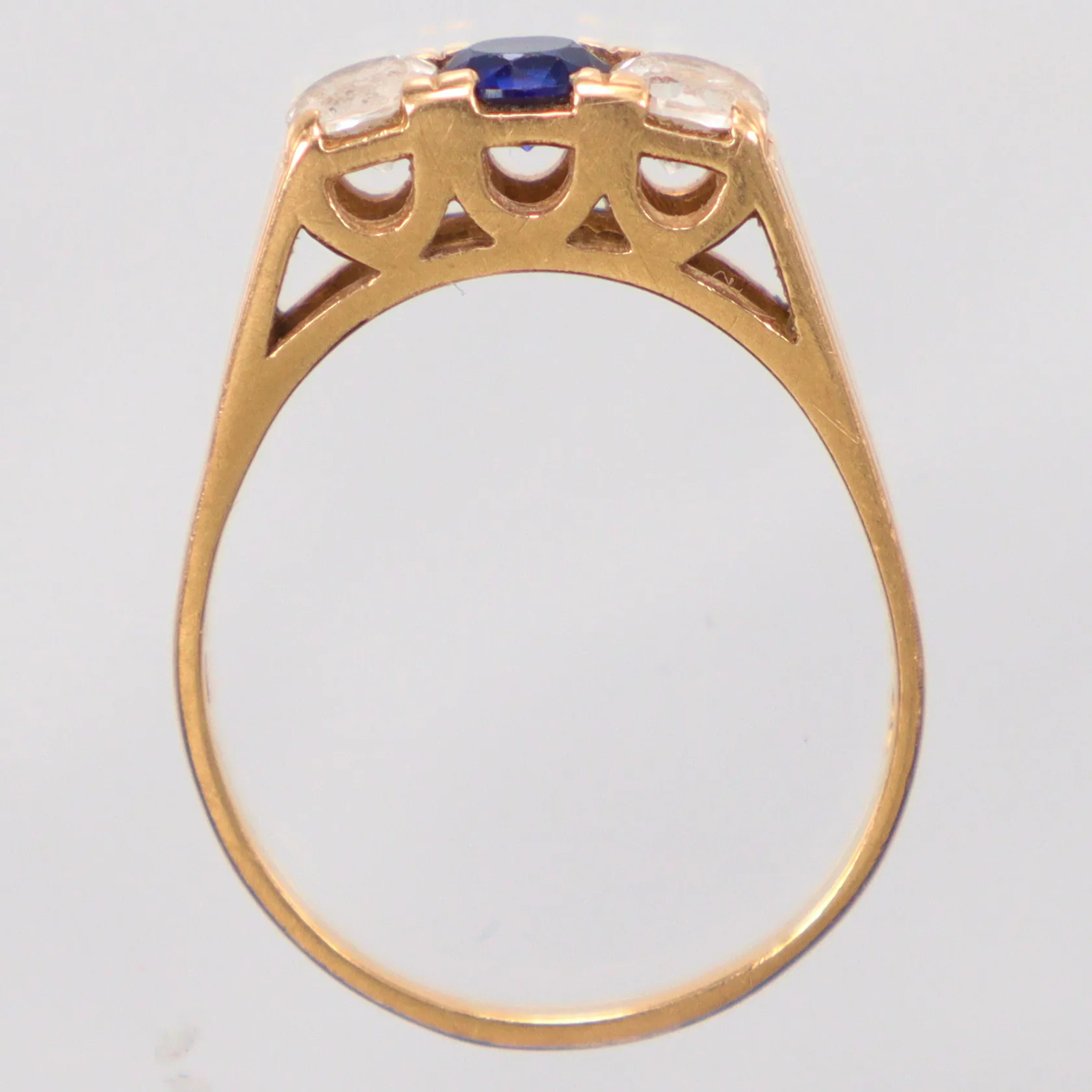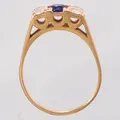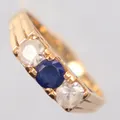 Ring Ø19, två vita stenar, en blå sten, ojämn i skenan, 18K Vikt: 4 g.