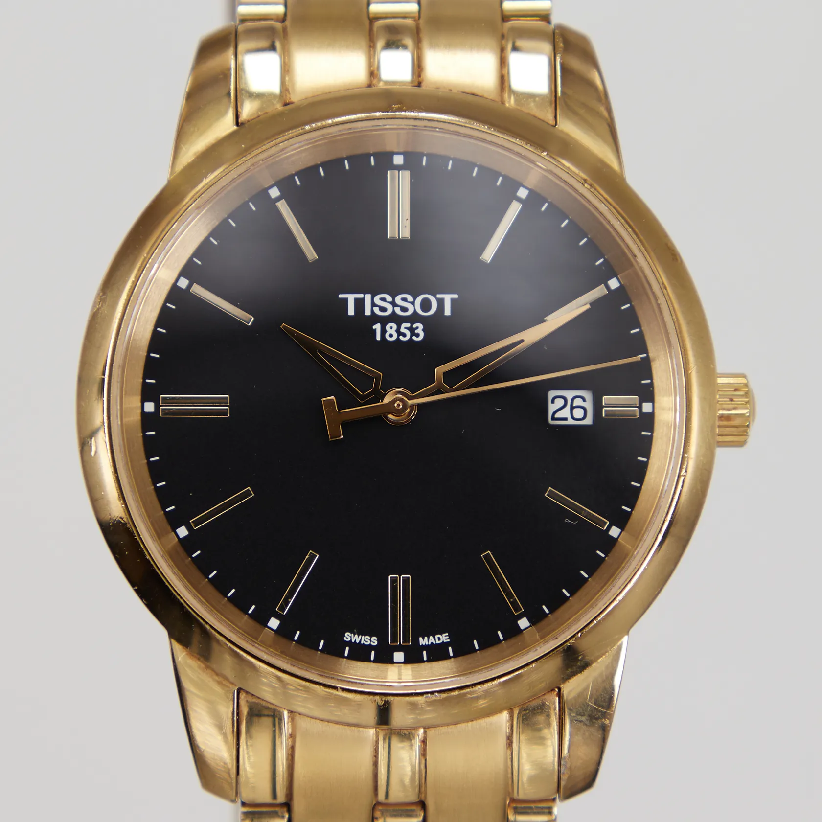 Herrur Tissot Classic Dream, 38mm, kvarts, ref: t033410B, guldtonat stål, länk med viklås, total längd ca 17cm, inga tillbehör.
