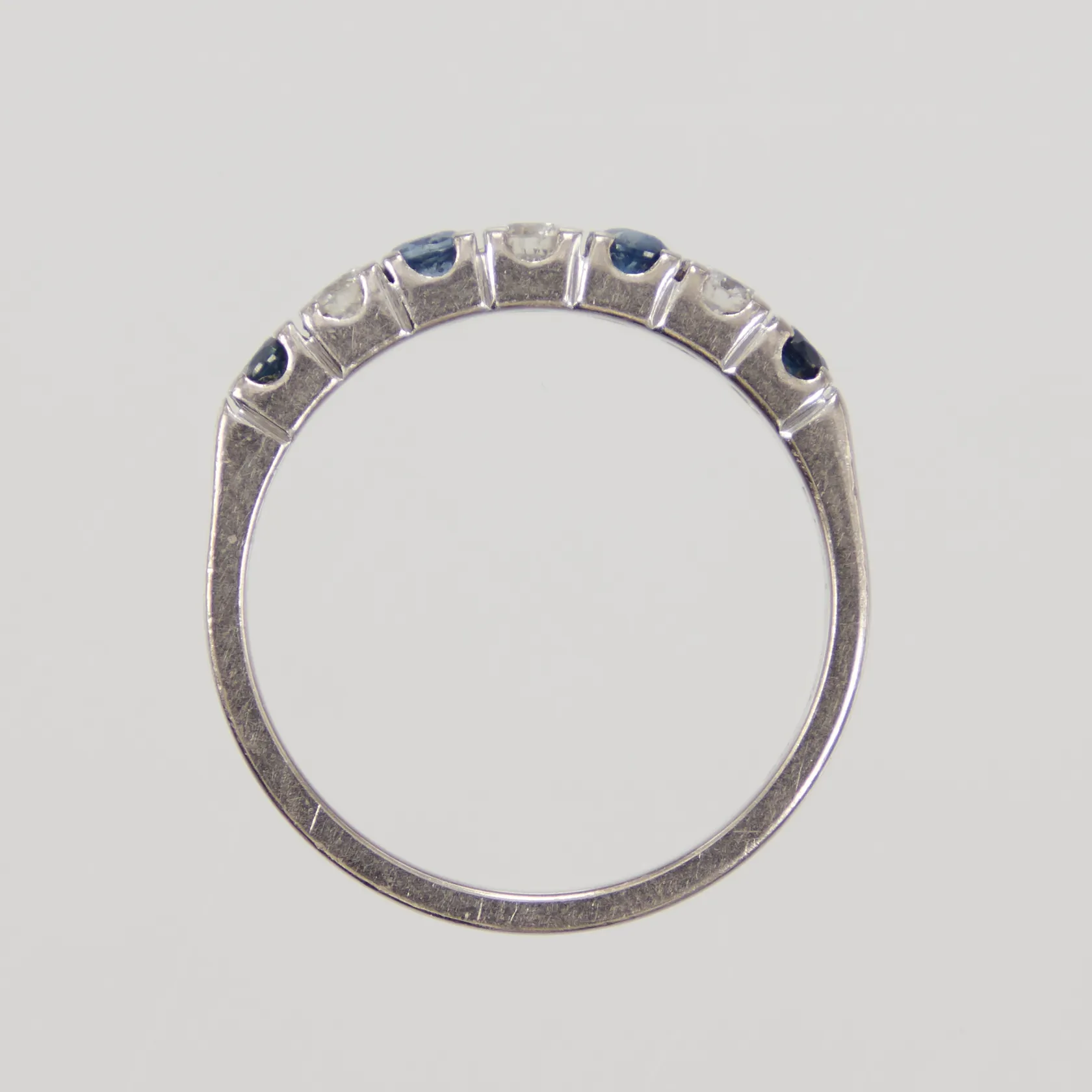 Ring med safirer och diamanter 3x ca 0,07ct, nagg på safirer, stl 16½, bredd 2,9mm, Schalin vitguld, 18K Vikt: 3,6 g.