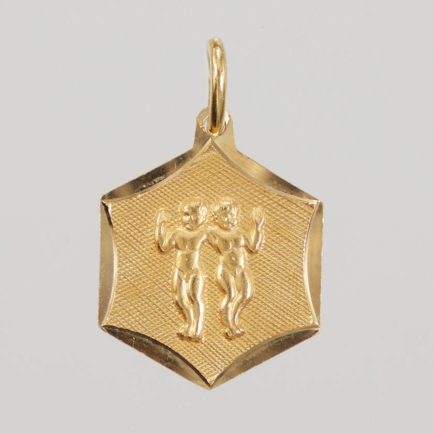Hänge stjärntecken Tvillingarna, längd inklusive ögla 26mm, bredd 16,2mm, 18K, Vikt: 3,5 g.