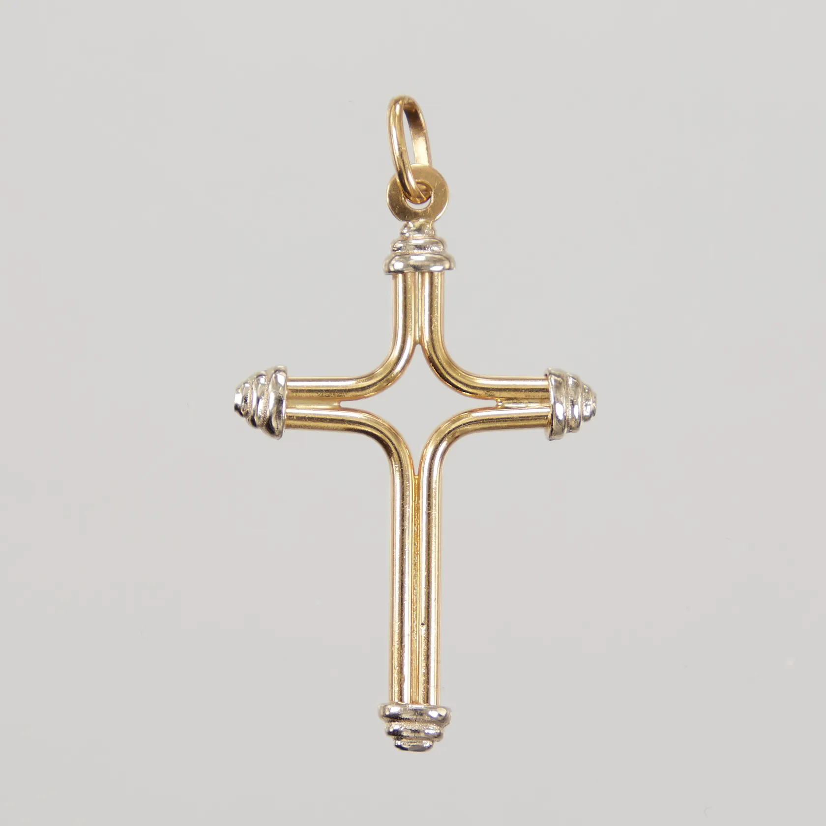 Hänge kors längd inklusive ögla 39,6mm, bredd 21,9mm, detalj i vitguld, 18K, Vikt: 2,4 g.