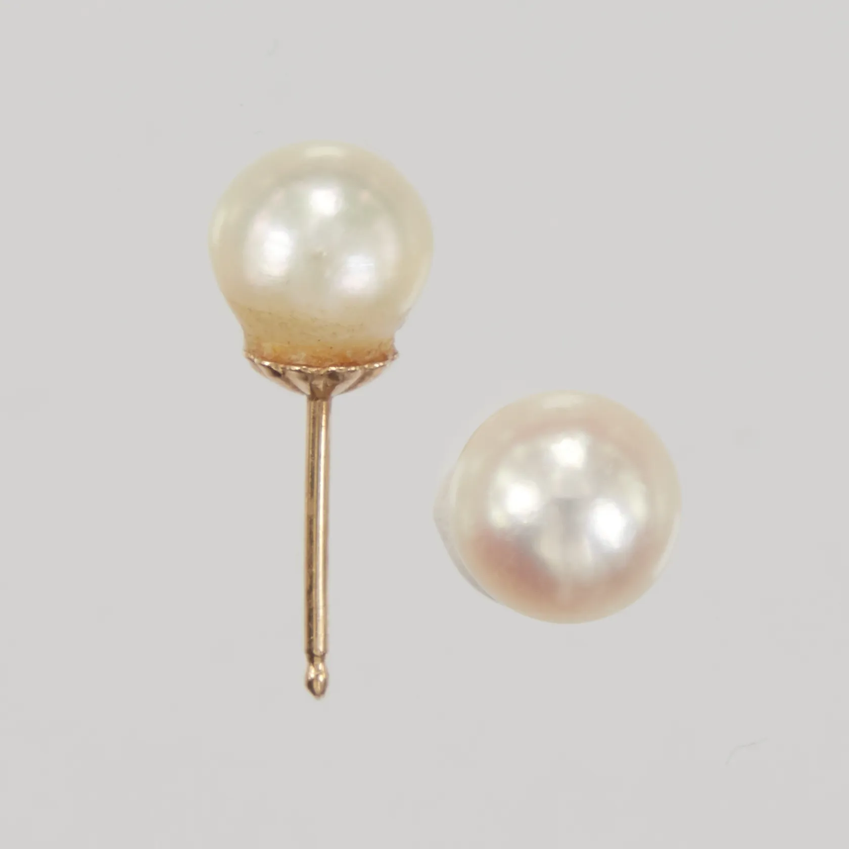 Ett par örhängen med odlade pärlor Ø6,8mm, stift, stopp i plast, 14K, Vikt: 1,1 g.