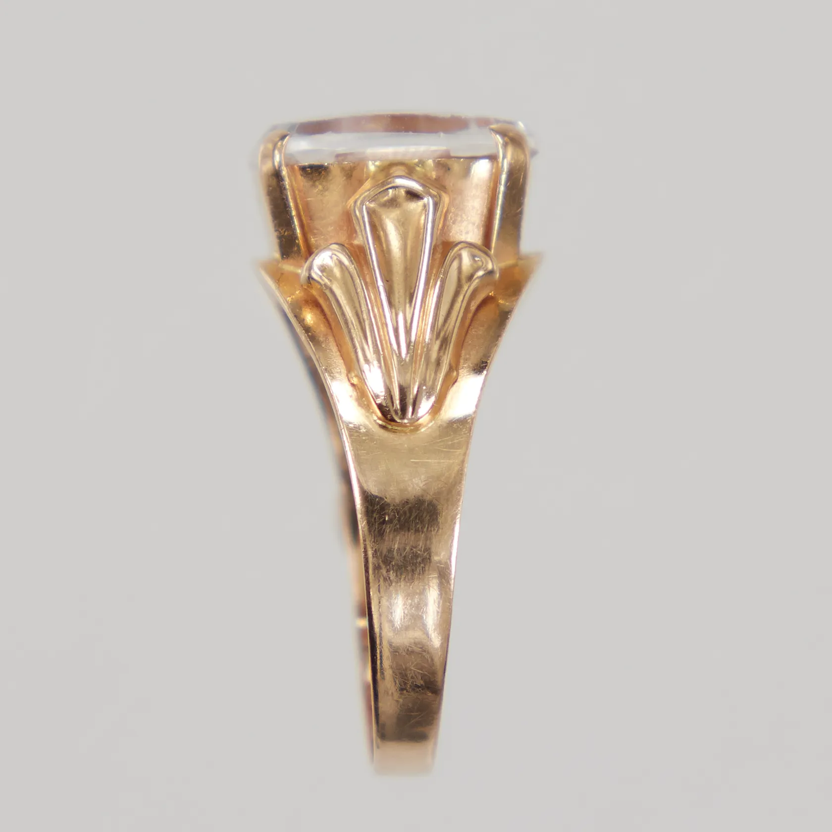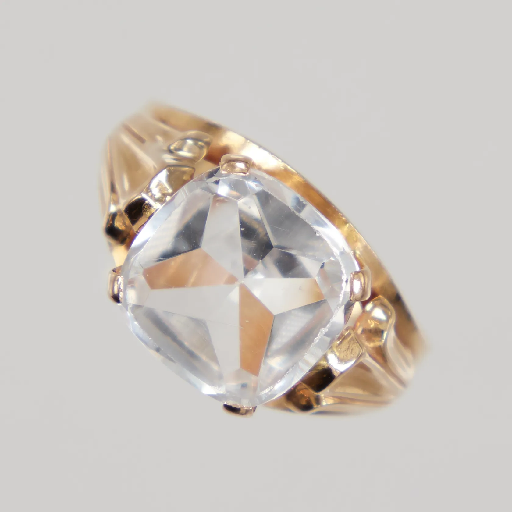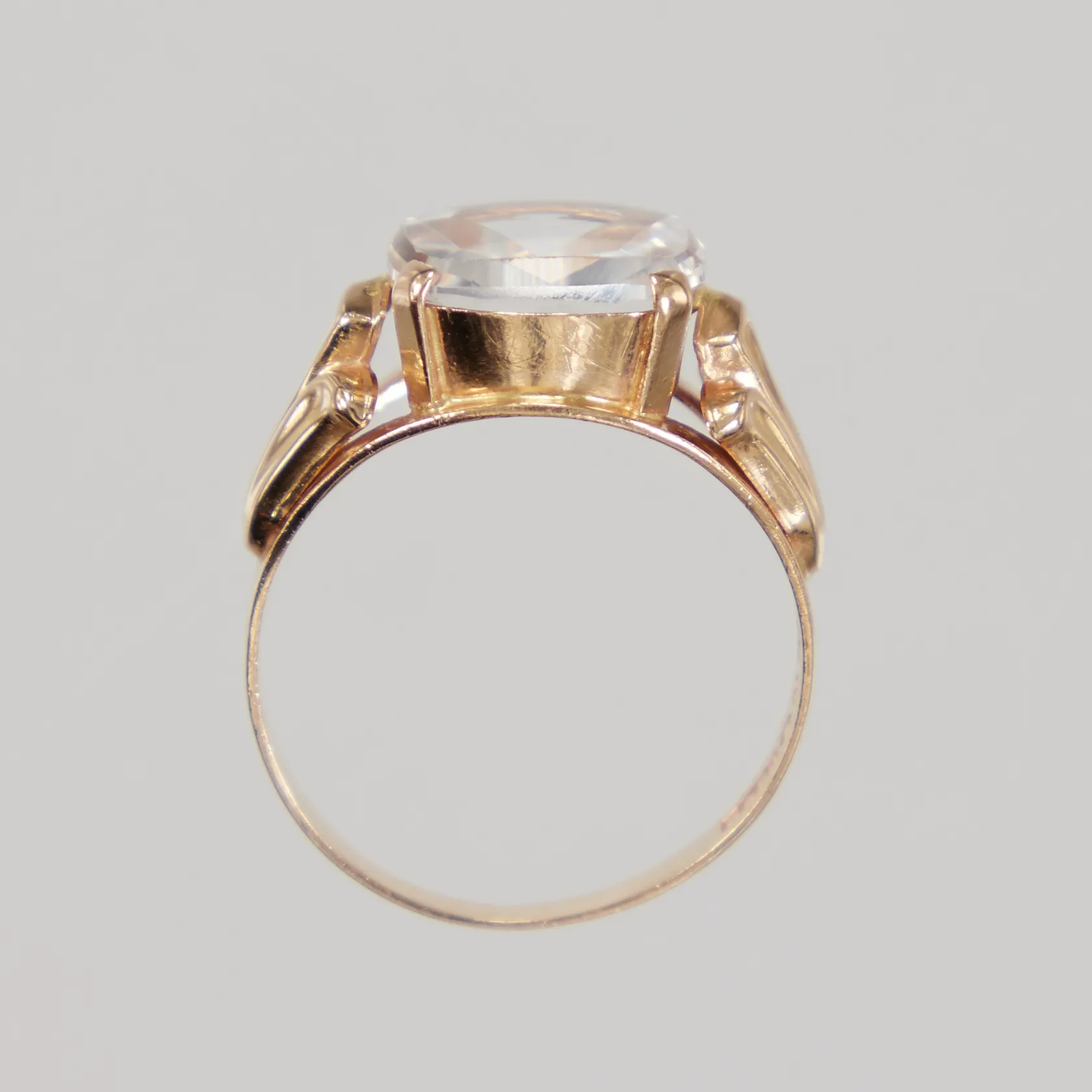 Ring med vit sten, smärre nagg/repor på stenen, stl 16½, bredd 2-10mm, 18K Vikt: 3 g.