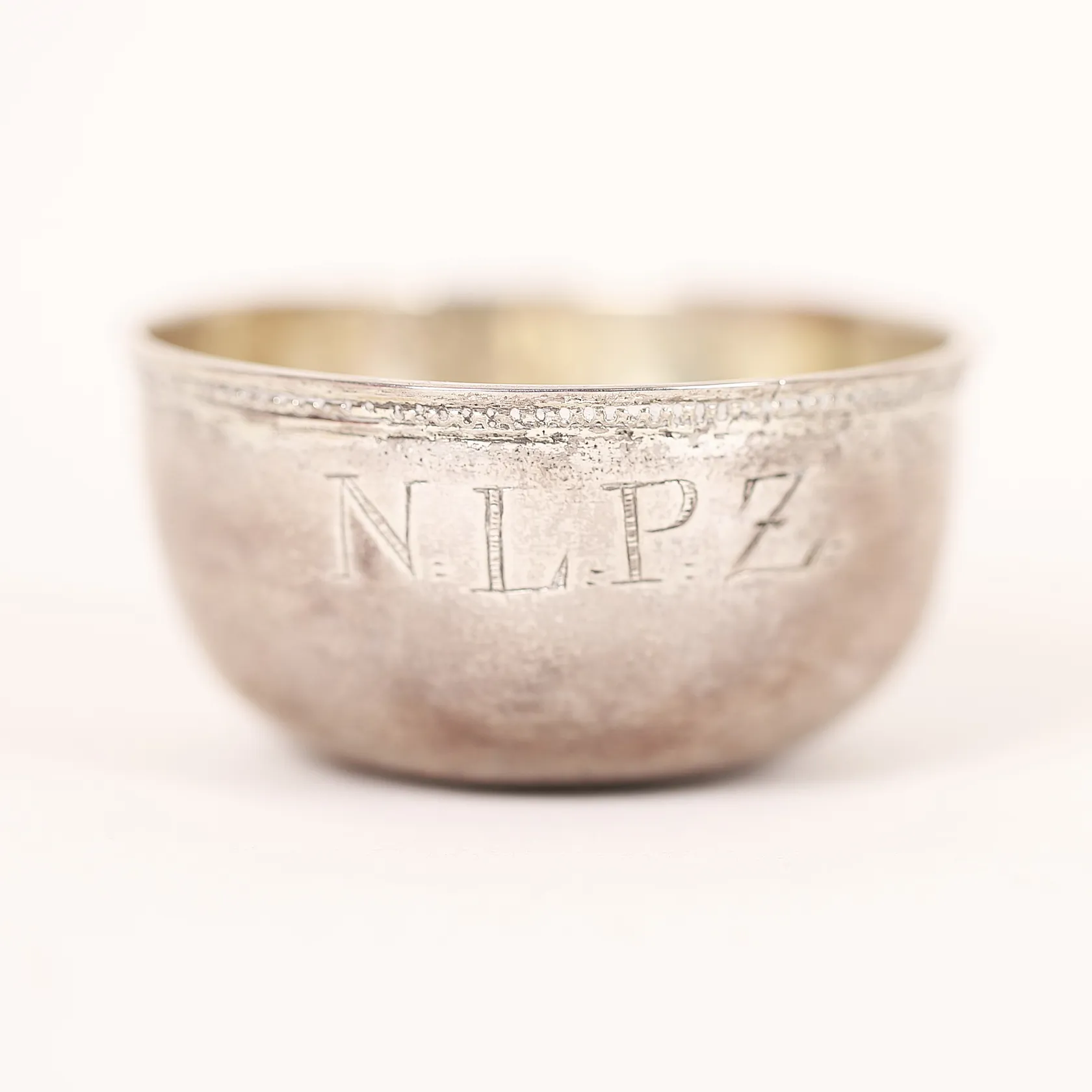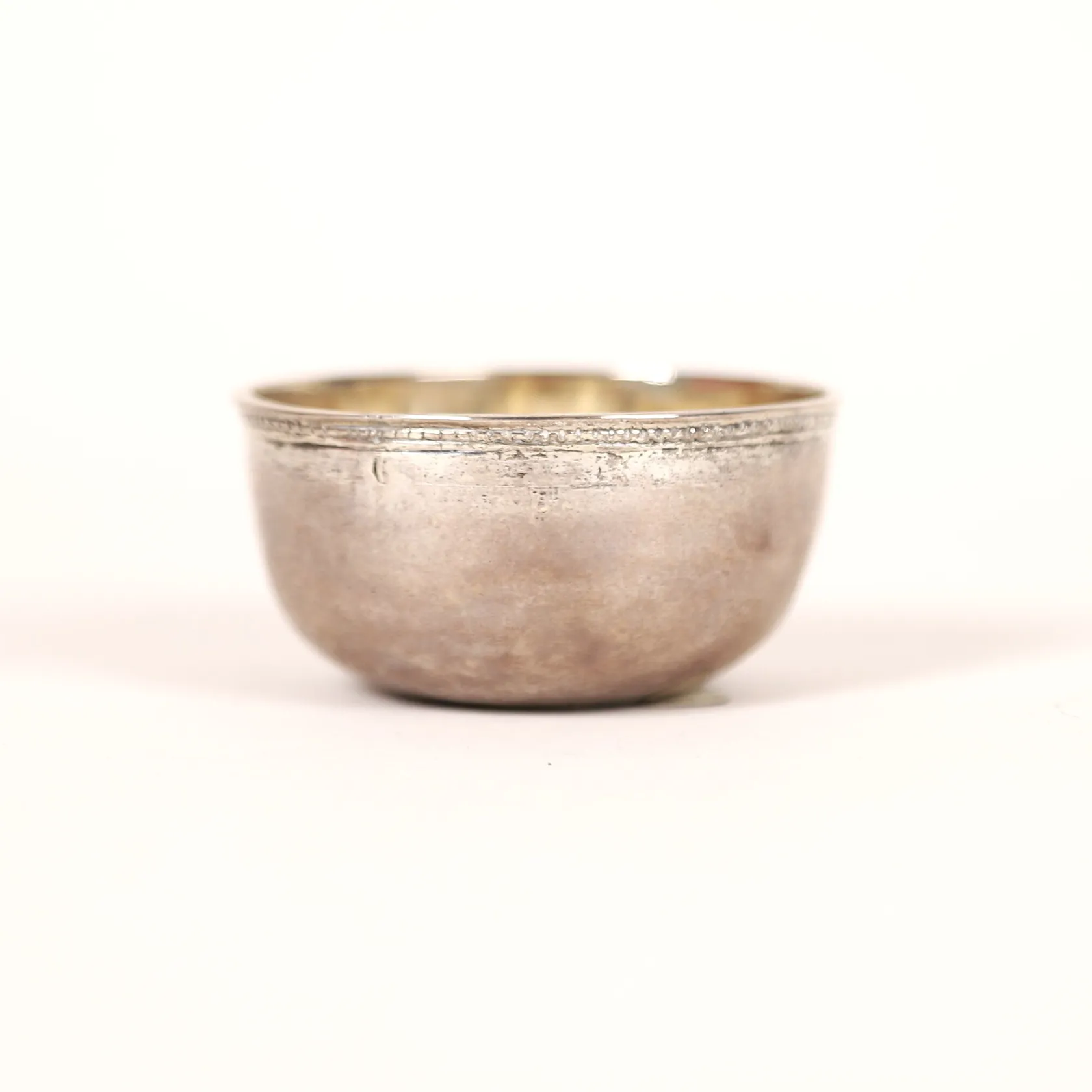 Tumlare, Andreas Löfbom, Uppsala, (verksam 1754-1773), spår efter förgyllning, under mynningen en vågbård, ca 6cm, höjd 3cm, äldre gravyr, lagad bristning, åldersbetingat slitage, silver. Vikt: 27,5 g.