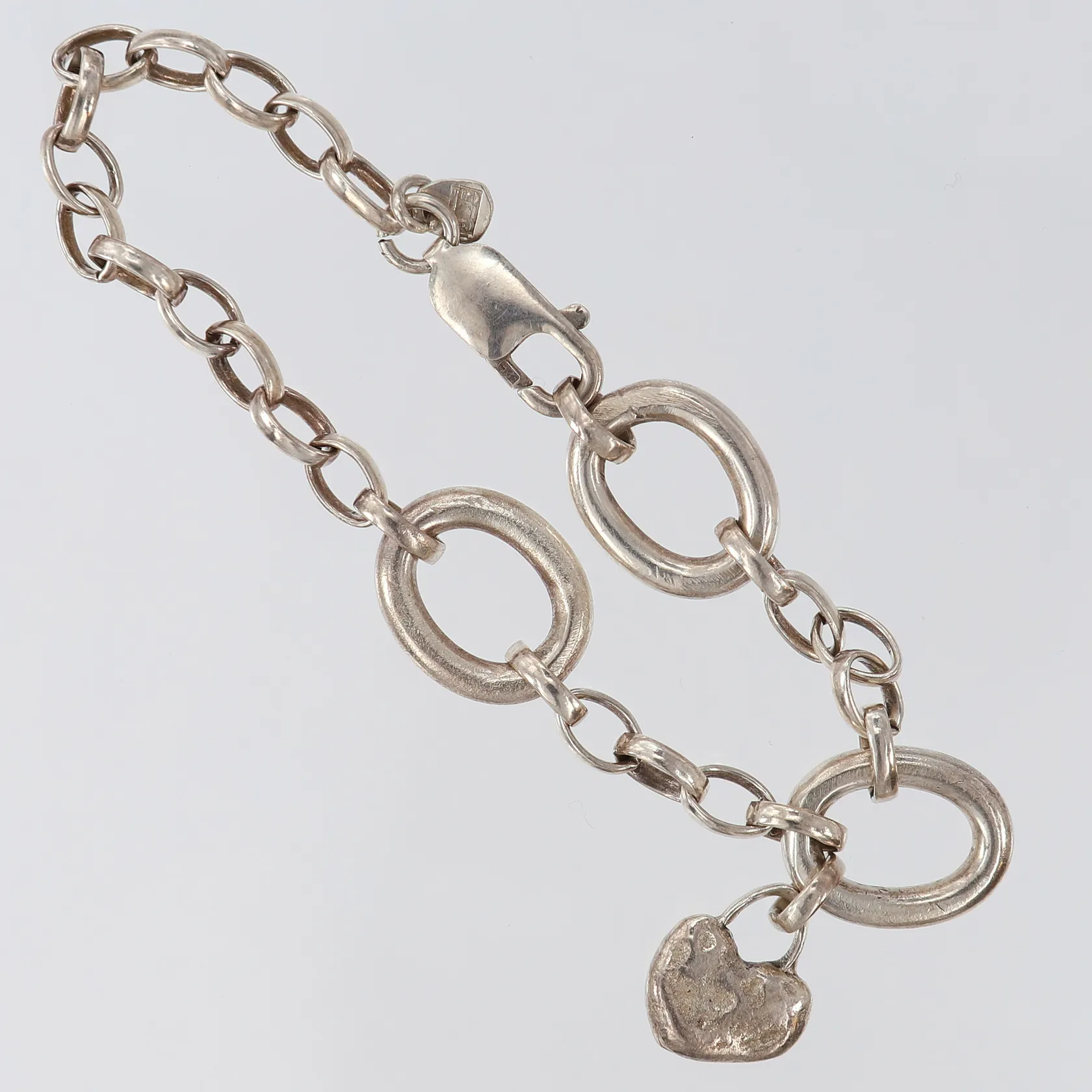 Armband med berlock, längd 19cm, bredd 5-13,5mm, en berlock bucklig, Silver 925/1000. Vikt: 18,2 g.