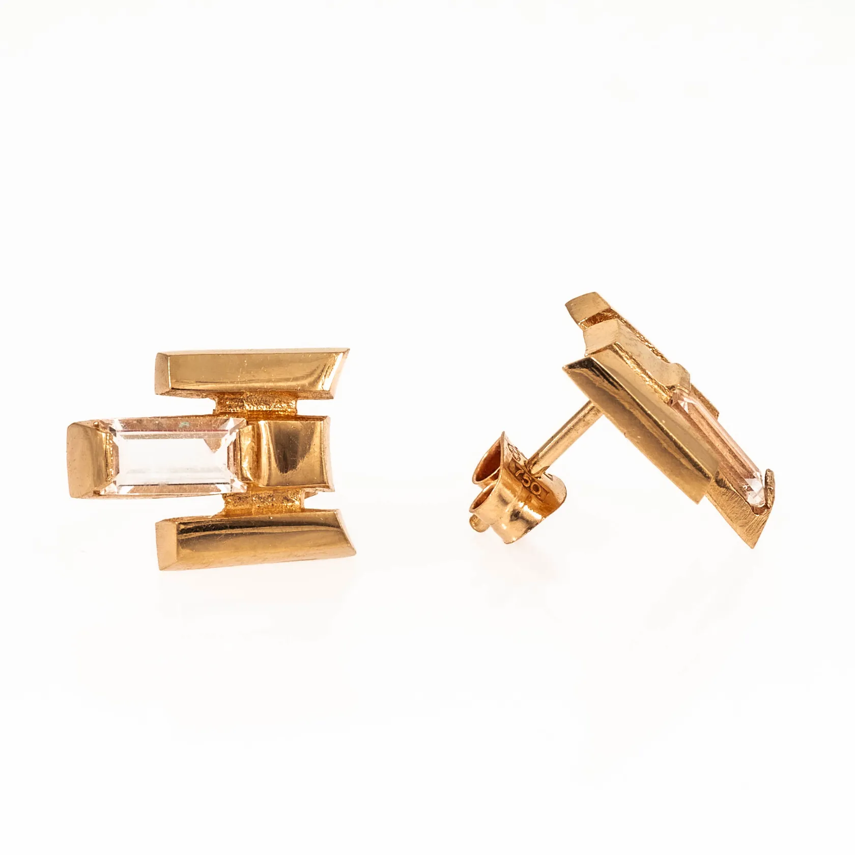 Örhängen i 18K guld med vita stenar. De är 9,5 x 12 mm och väger 2,4g. Vikt: 2,4 g.