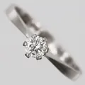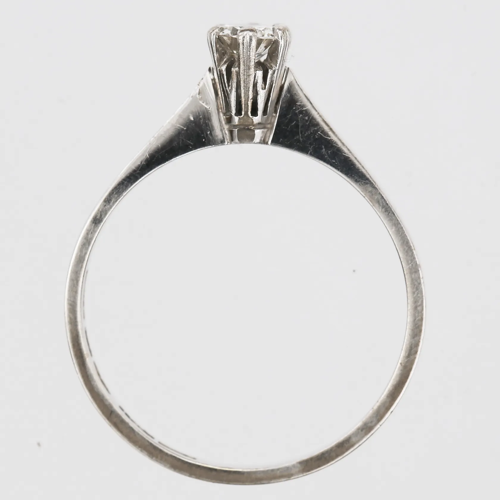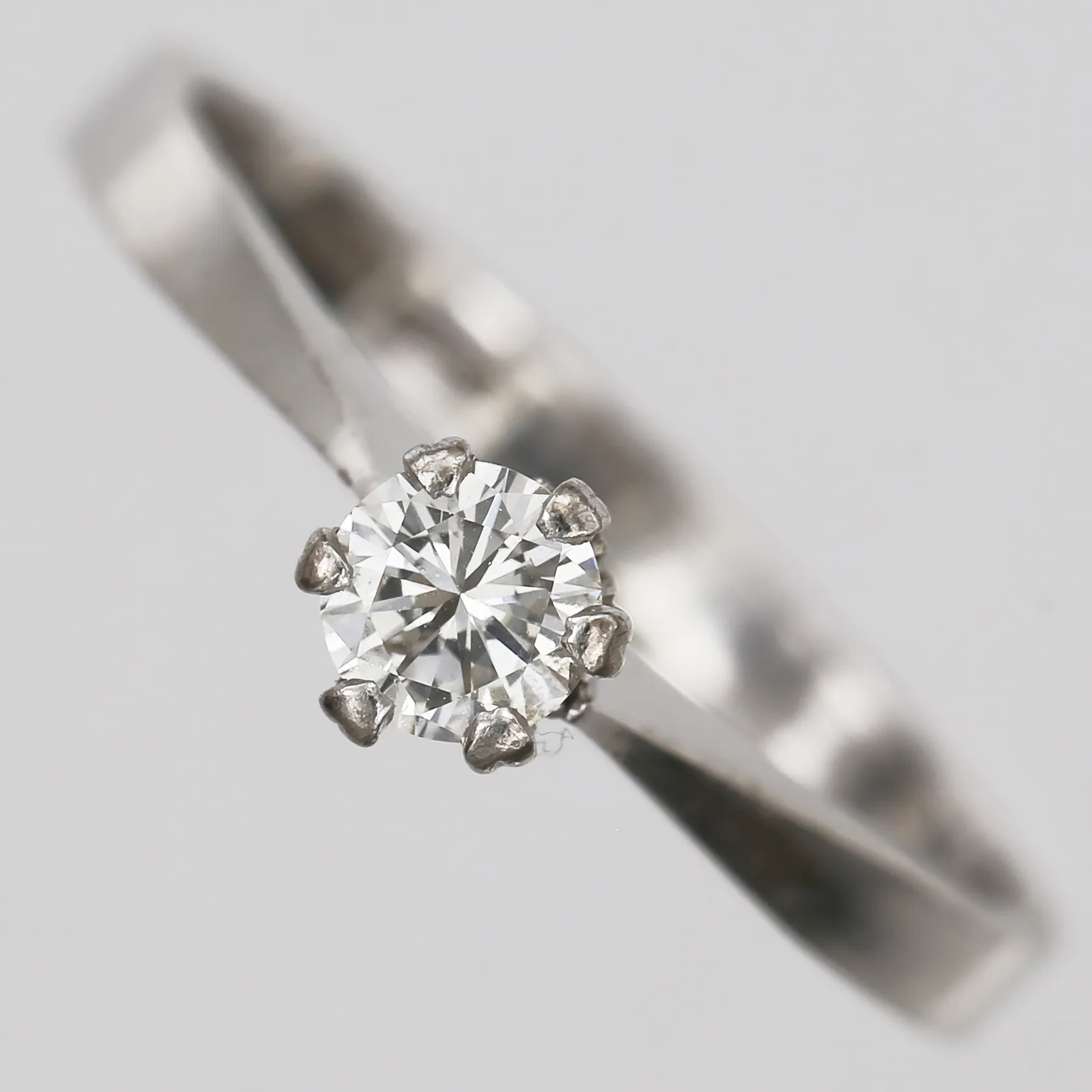 Ring med diamant 1 x ca 0,27ct enligt gravyr, kvalitet ca: W(H)/VS, stl: 18¼, bredd: 2 - 5 mm, 18K vitguld. Vikt: 2,8 g.