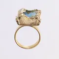 Ring med botryoidal hemimorfit och briljantslipade diamanter 2x ca 0,02ct samt en åttkantsslipad diamant 1x ca 0,02ct, kvalitet ca W-TCr(H-I)/VS-SI, tillv. Jürgen Girgsdies Juvel-guldsmedja, Stockholm 1995, stl 17¾, bredd 5-20mm, 18K guld. Vikt: 17,5 g.