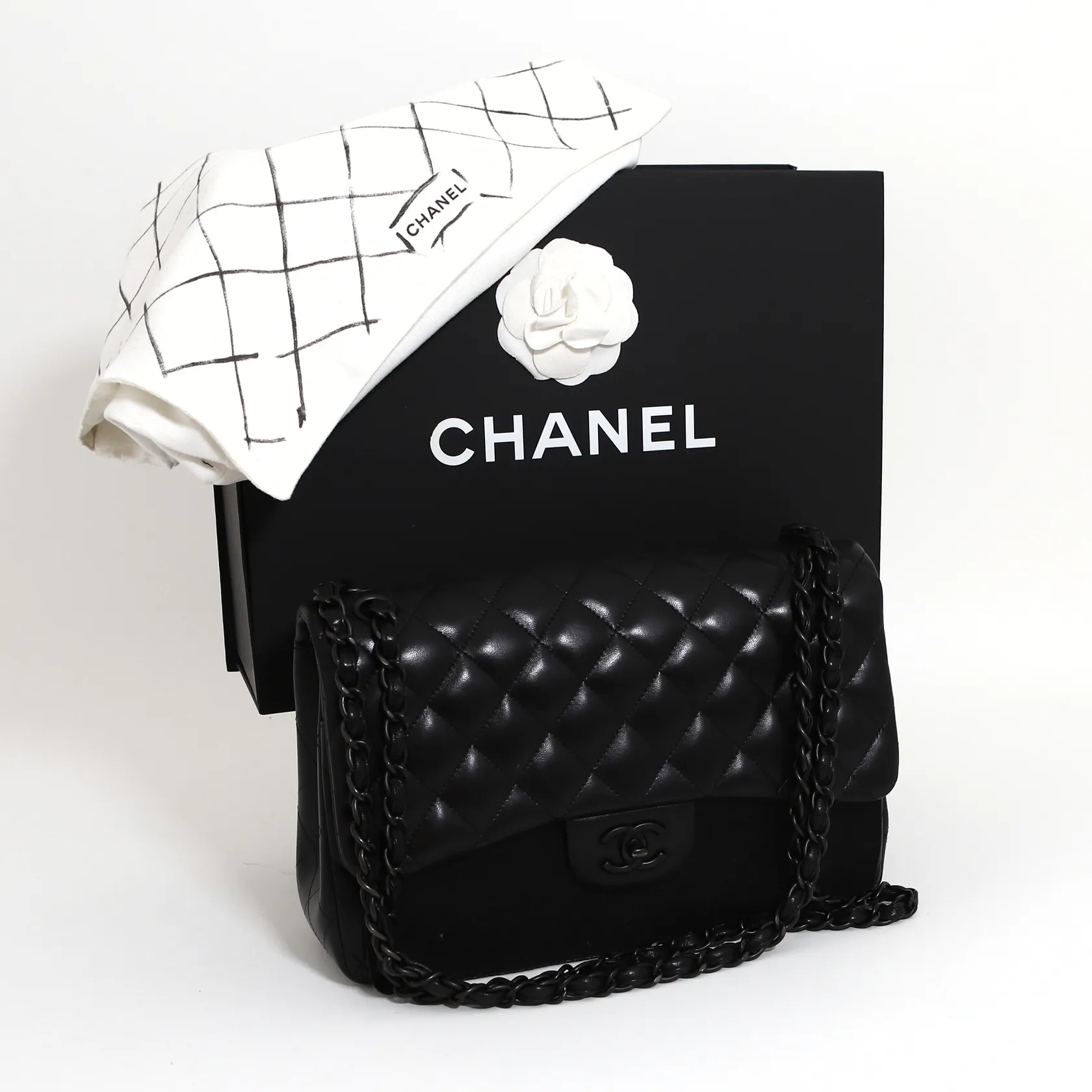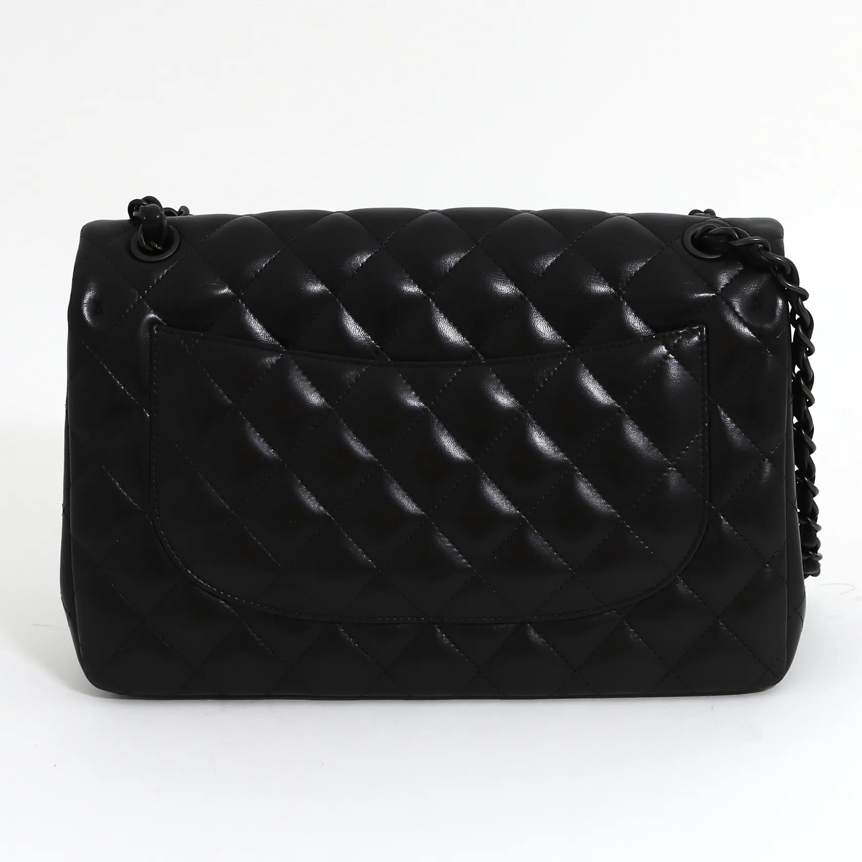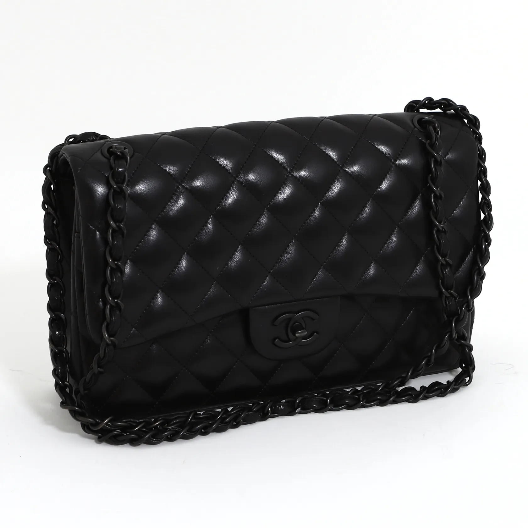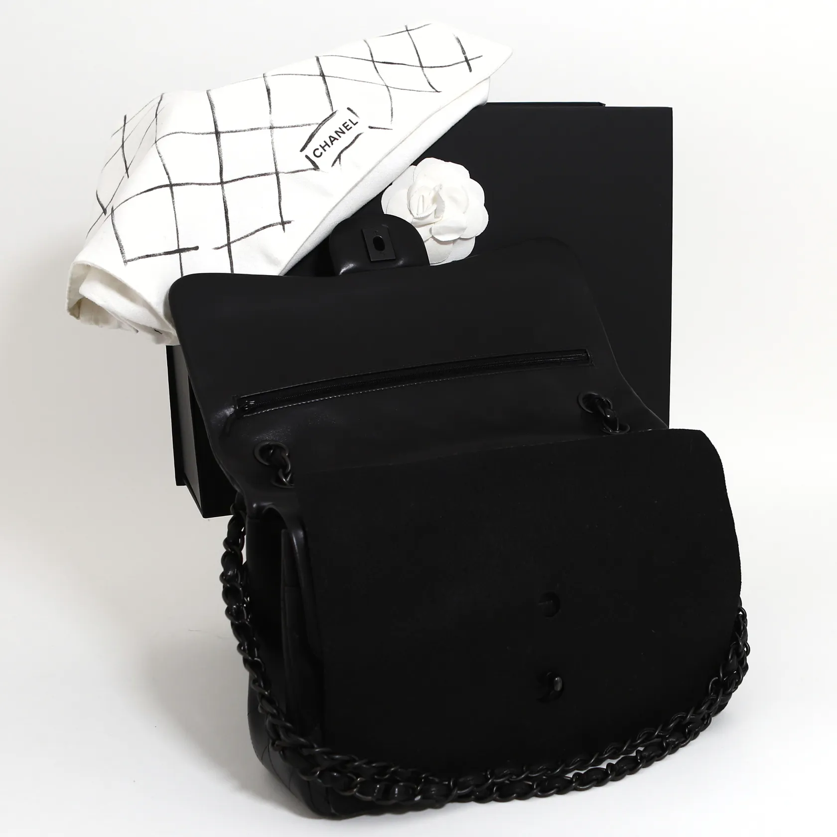 Väska Chanel SO BLACK Classic Doubble Flap 2011, svart quiltad läder med beslag i svartfärgad metall, invändigt ett stort fack samt två mindre, utvändigt en ficka, märkt Chanel Made in Italy, ca 30 x 19 x 9 cm, dustbag, etui, fint skick, enstaka repor.