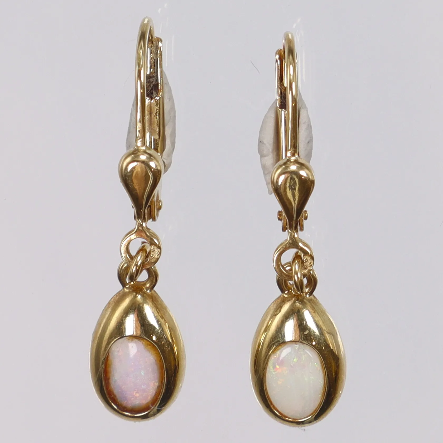 Ett par örhängen med vita opaler, 2 x ca 0,15ct, hängande modell, höjd 9mm, 18K Vikt: 1,9 g.