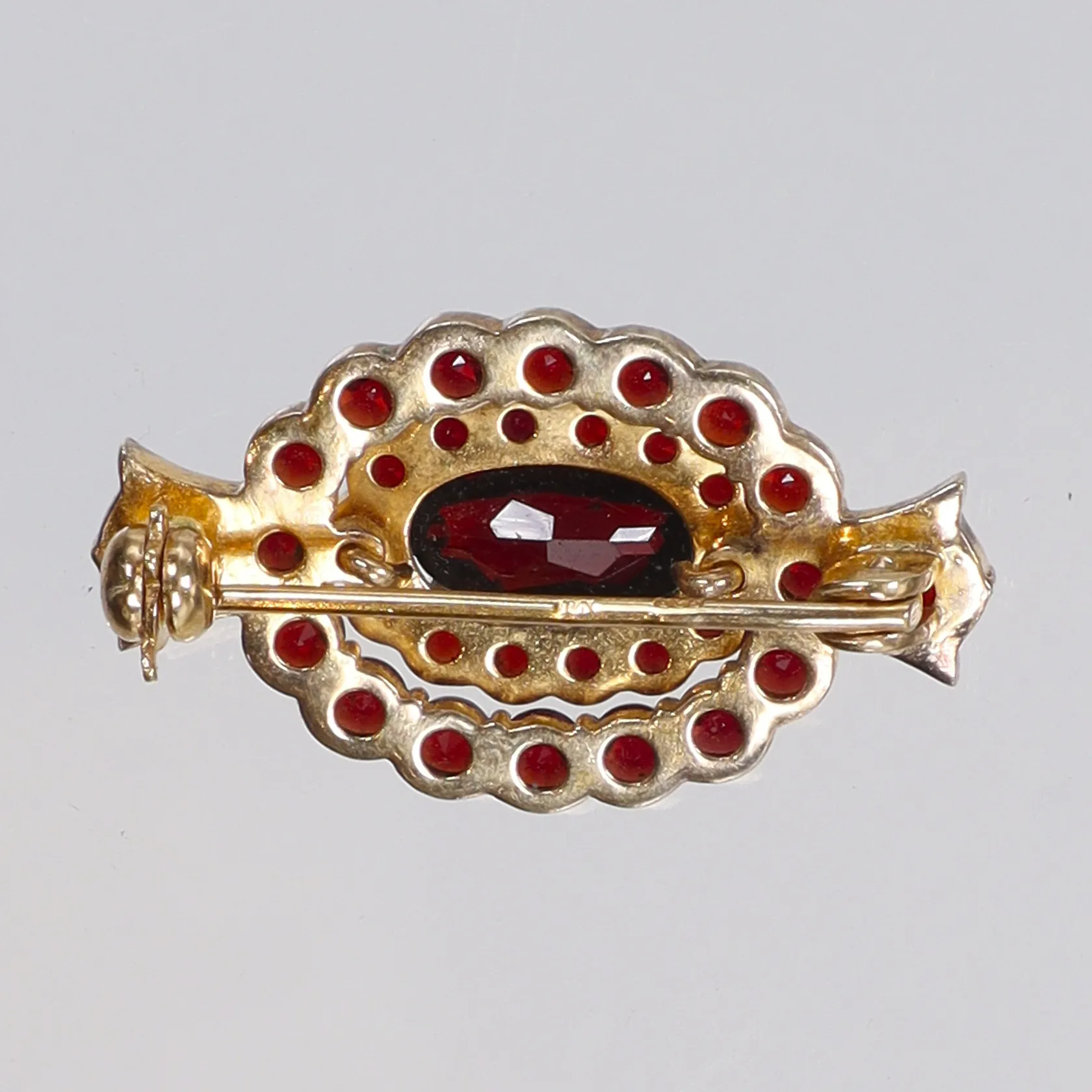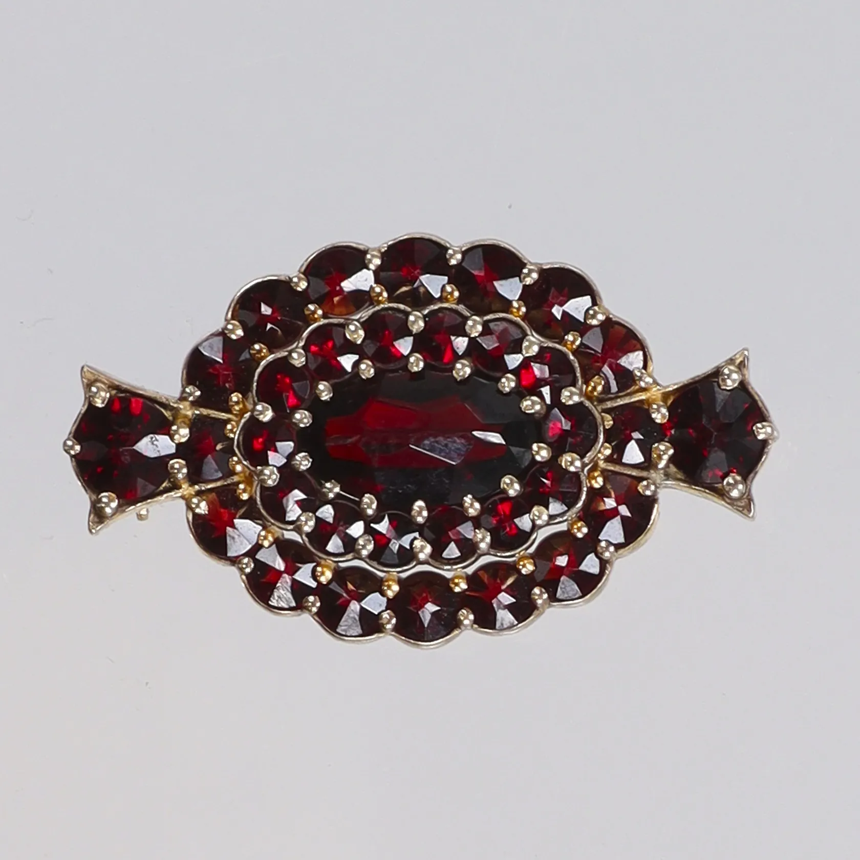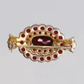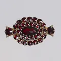 Brosch med granater, förgylld 30x17mm, stämplad VJ (Victor Janson) silver 925/1000 Vikt: 4,5 g.