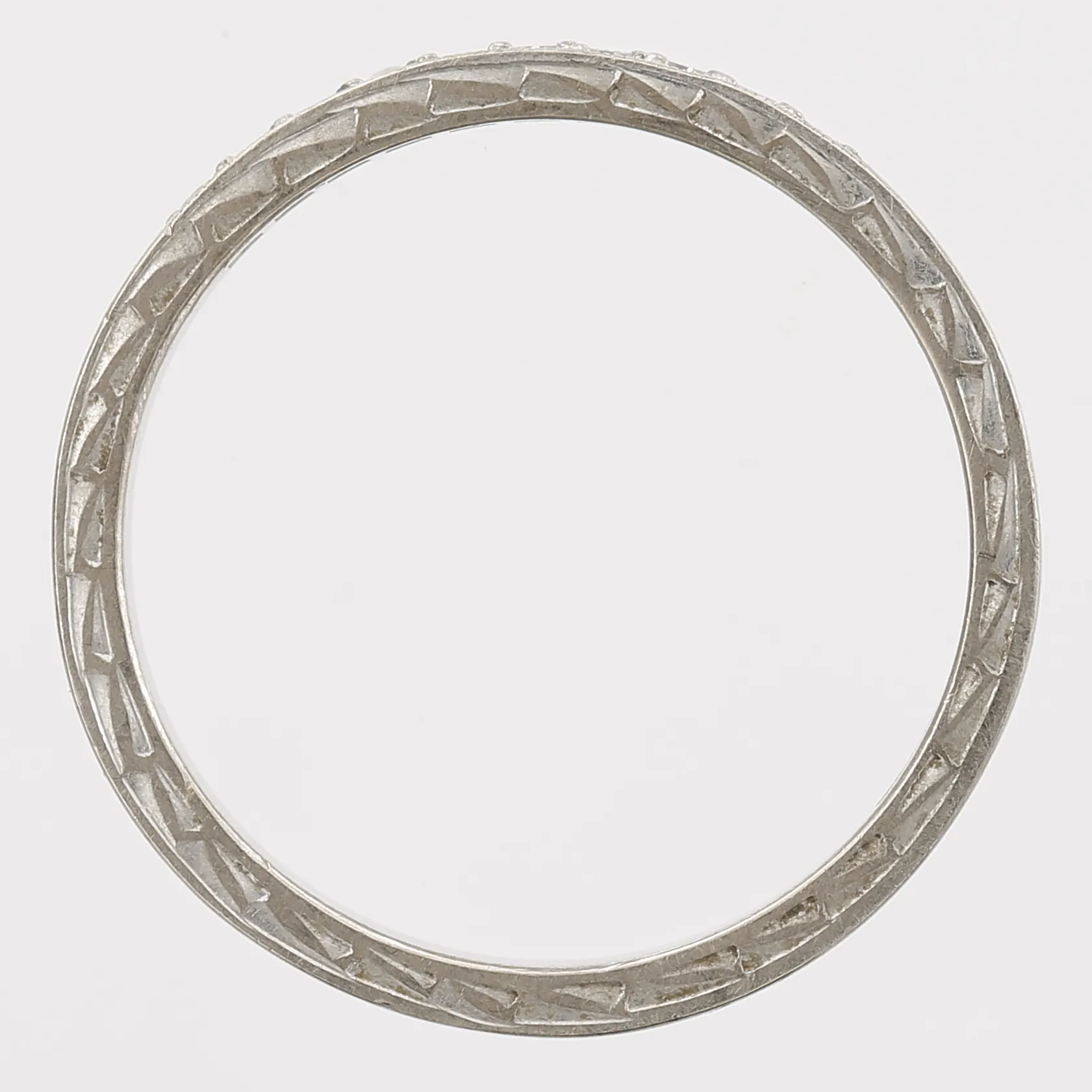 Ring med diamanter 0,12ctv enligt gravyr, dekor i relief, stl: 17½, bredd: 2mm, Örns Juvelatelje, Göteborg 1962, 18K vitguld Vikt: 3 g.