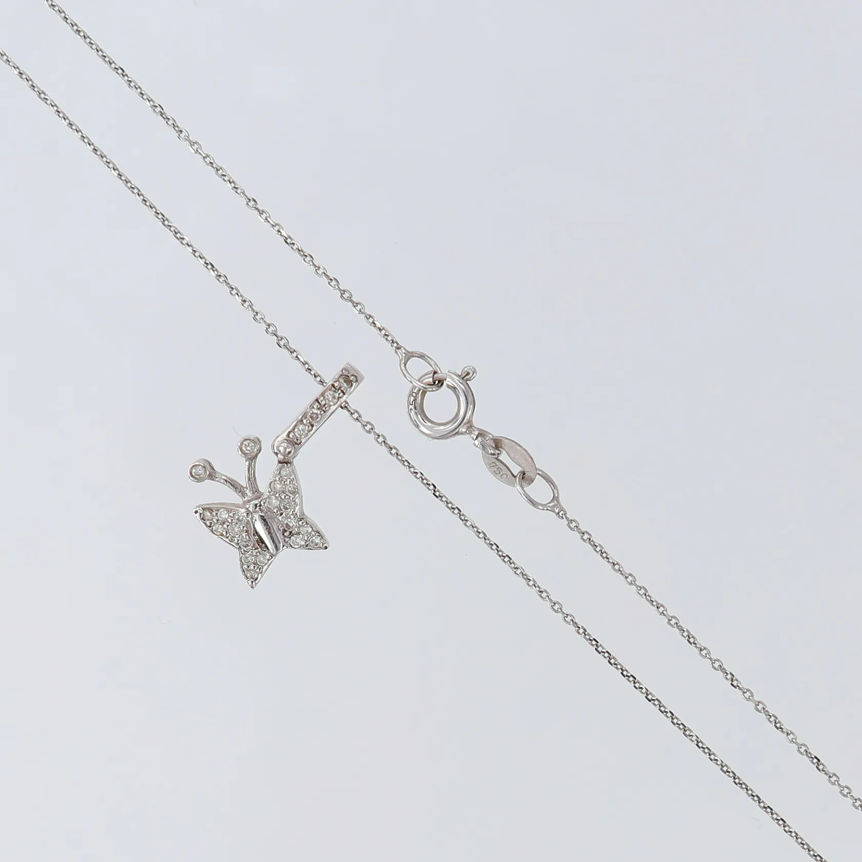 Kedja med hänge, diamanter ca 24 x 0,0025-0,005ct, längd 46cm, bredd ca 0,5mm, hänge 5,5x17mm, vitguld, 18K Vikt: 2,2 g.