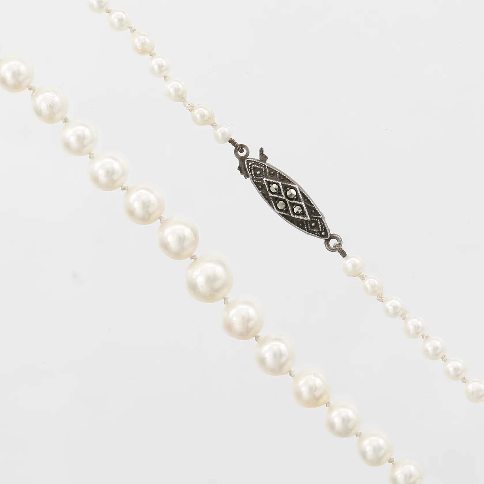 Collier med odlade saltvattenpärlor Akoya, doserat, silverlås med markasiter, längd 50cm, bredd 3-8mm