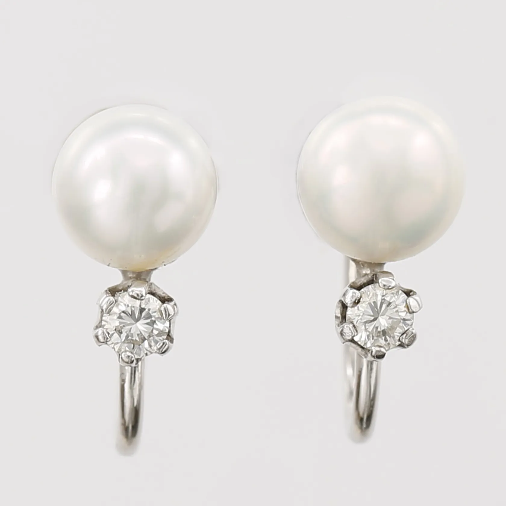 Ett par örhängen med diamanter 2 x ca. 0,05ct samt pärlor, Ø 6,5mm, Harry Lagerström AB, Enköping 1961, 18K vitguld Vikt: 2,8 g.