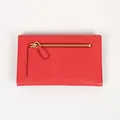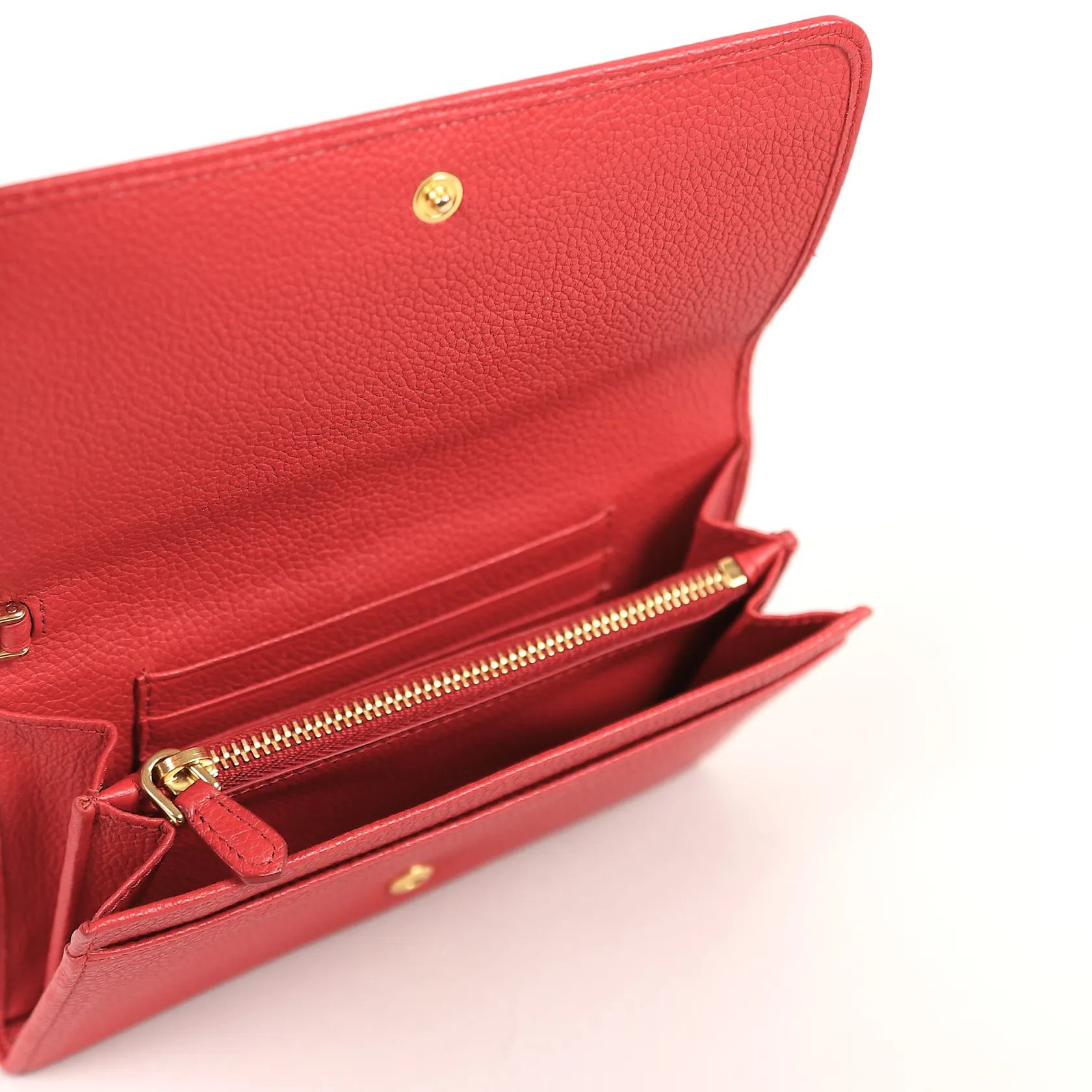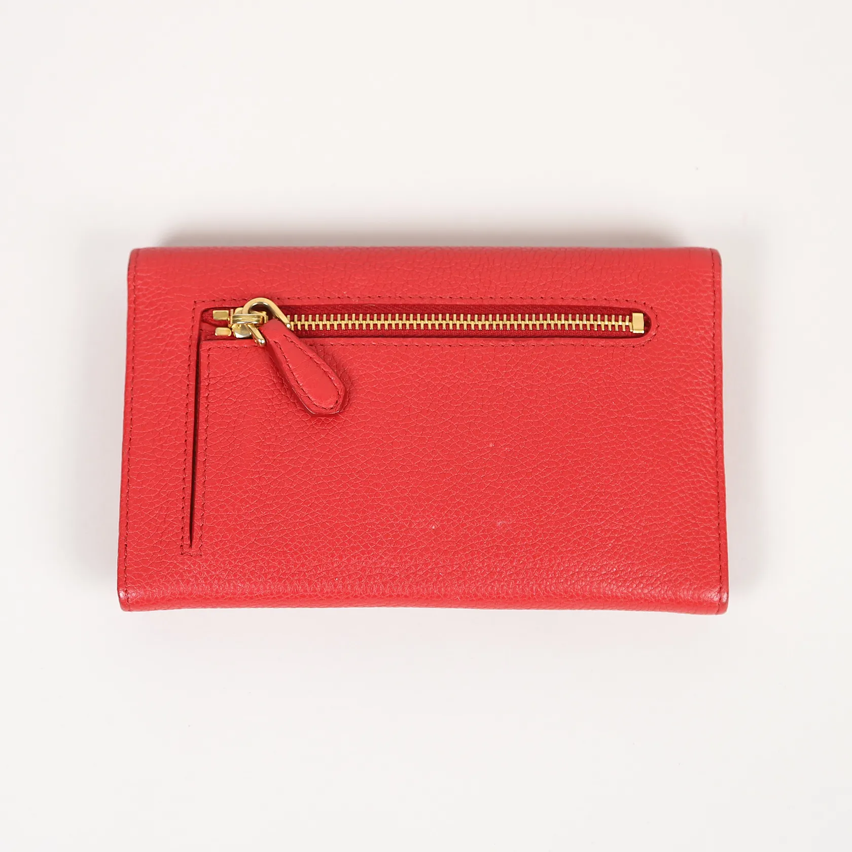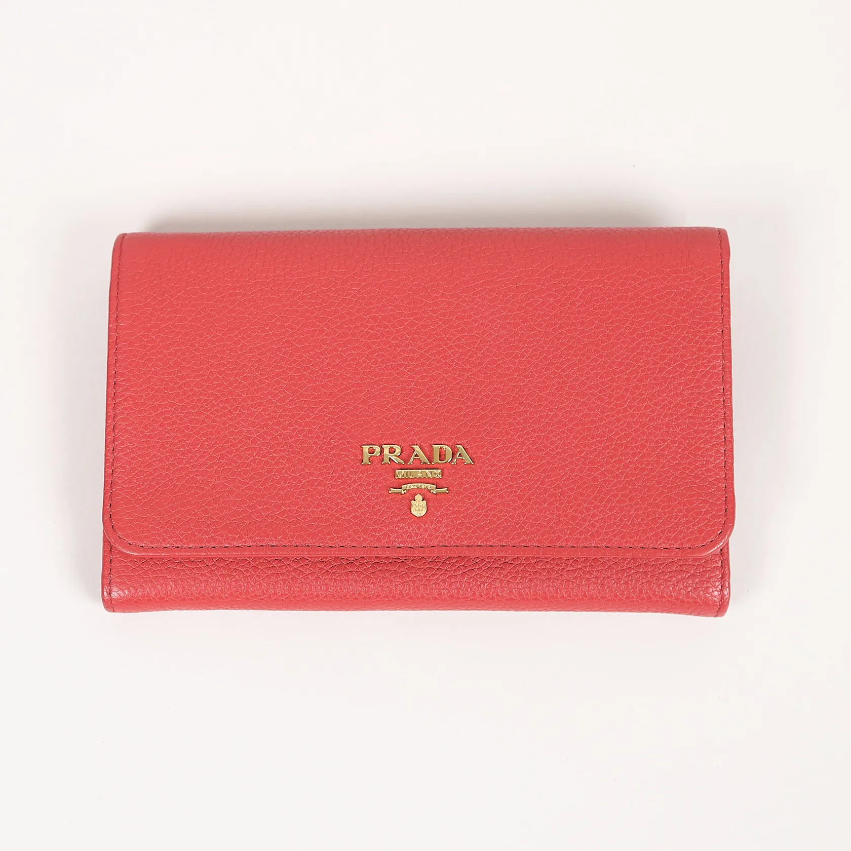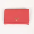 Plånbok, Prada, rött läder och detaljer av guldfärgad metall ca 10x16cm, slitage.
