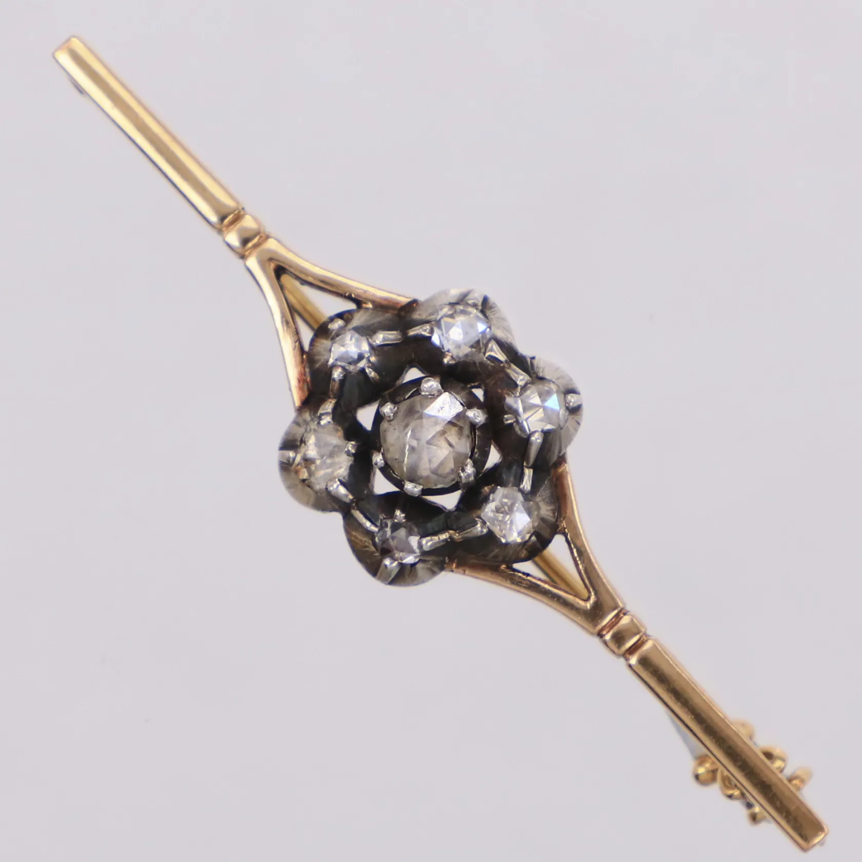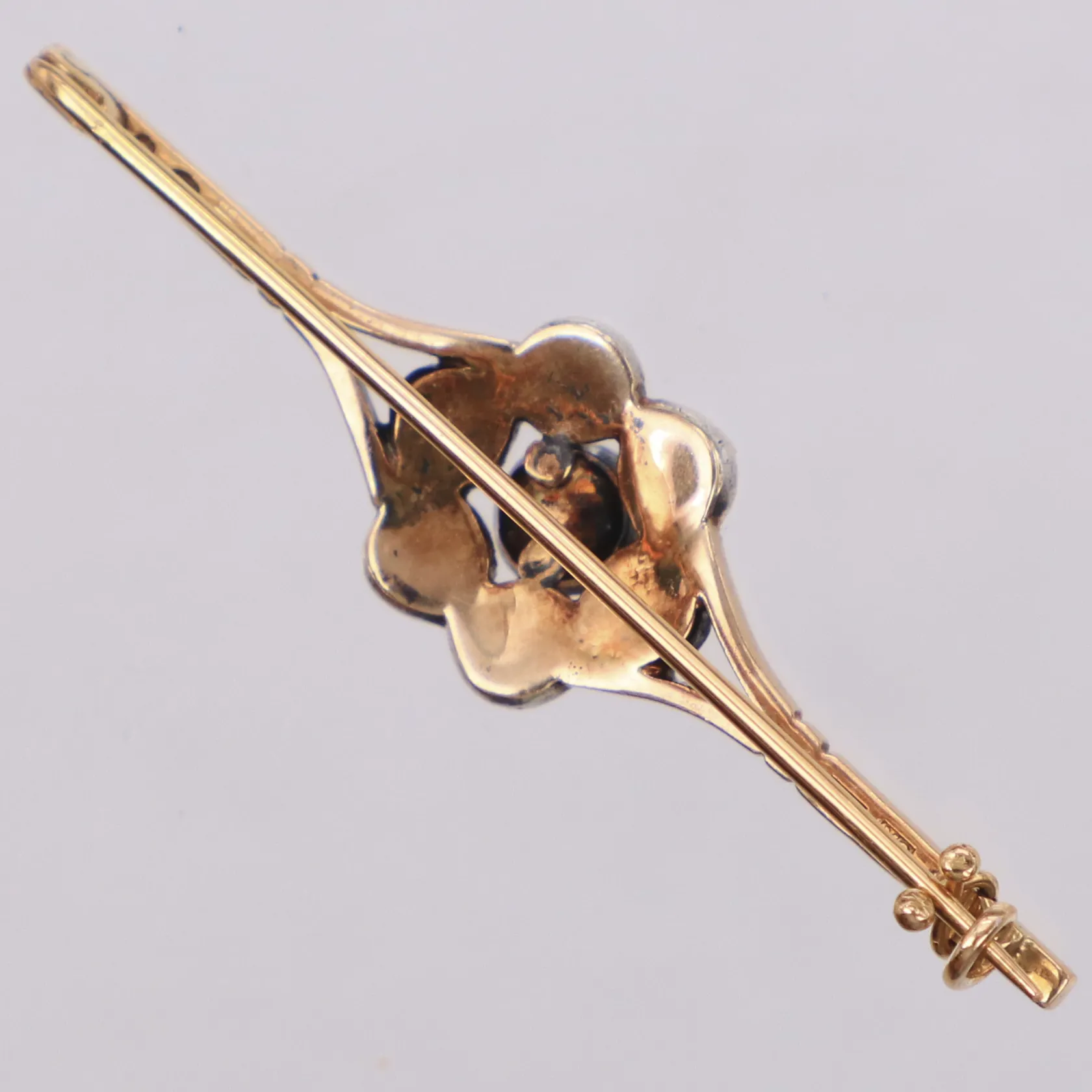 Brosch med rosenstenar, Hovjuvelerare Carlman, Stockholm år 1948, fattning i silver, längd 50mm, bredd 1,9-12,5mm, 18K. Vikt: 5,4 g.