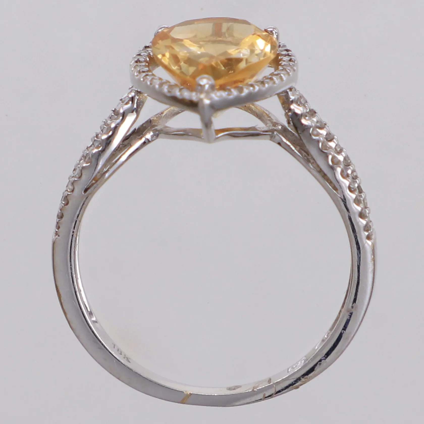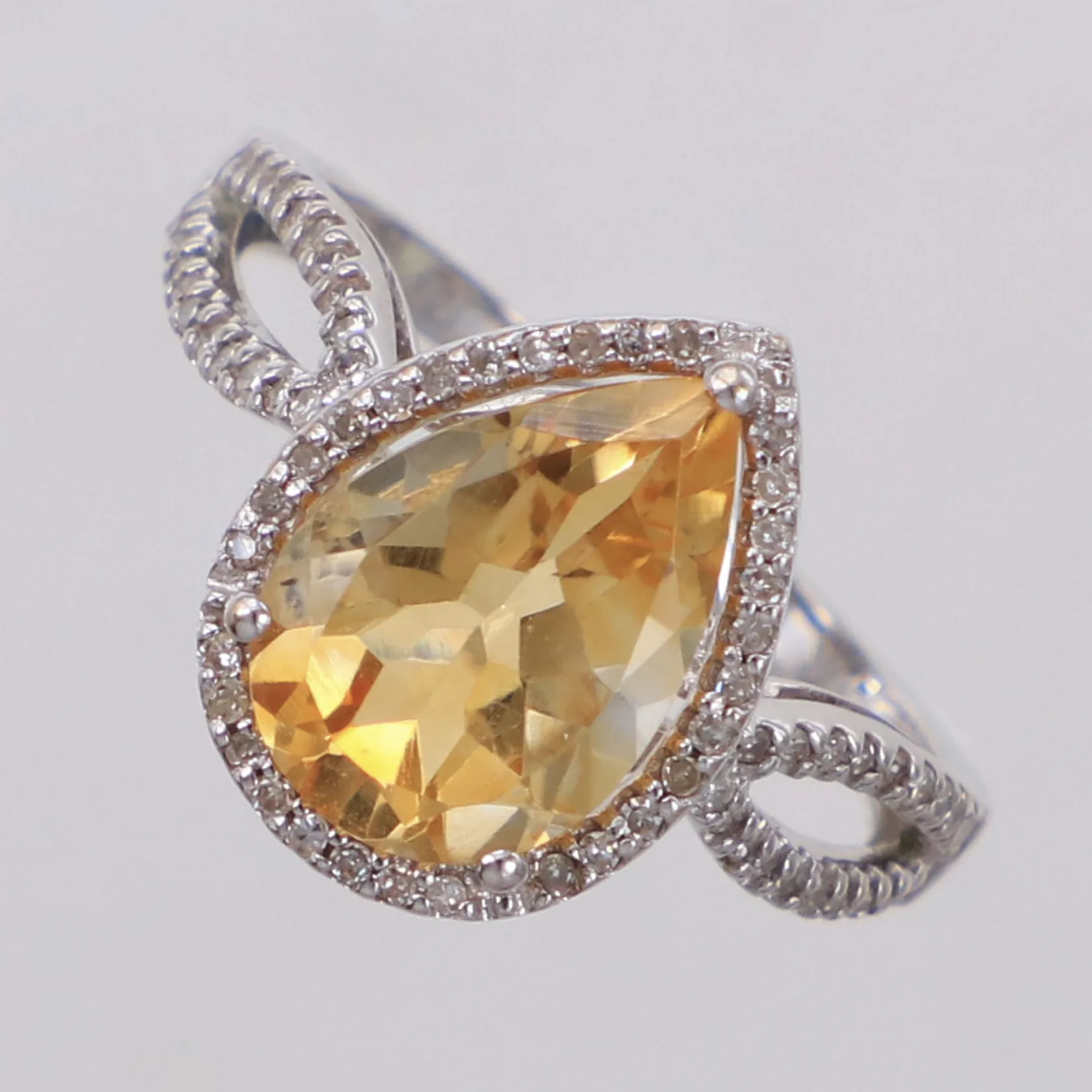 Ring med droppslipad citrin ca 2,60ct och diamanter ca 70 x ca 0,005ct, stl: 17½, Kaplans Safir AB, 18K vitguld. Vikt: 3,3 g.