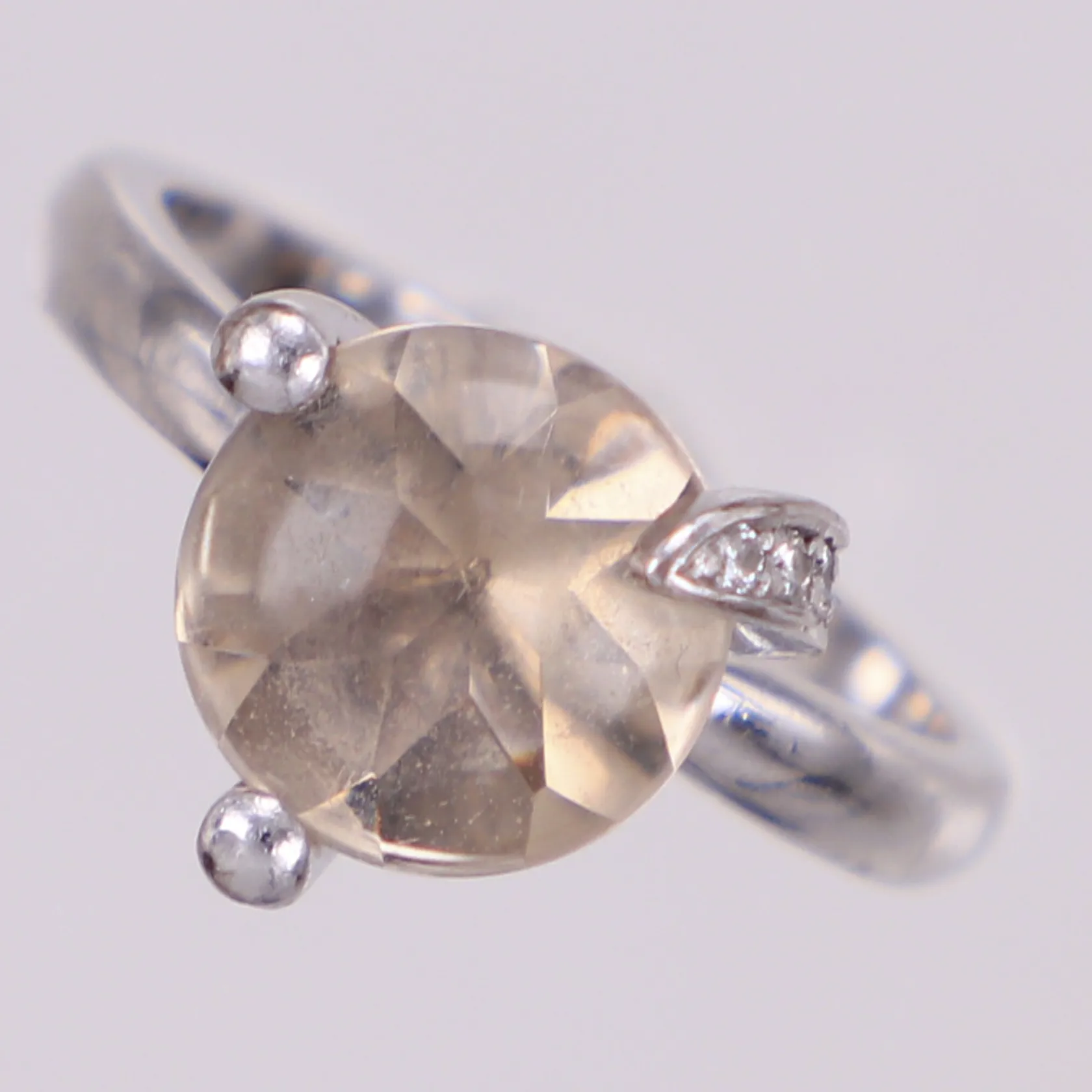 Ring Bonbon, Engelbert, specialslipad rökkvarts ca 3,50ct och diamanter ca 0,10ctv, stl 17¾, bredd ca 12mm, vitguld, 18K. Vikt: 6,3 g.