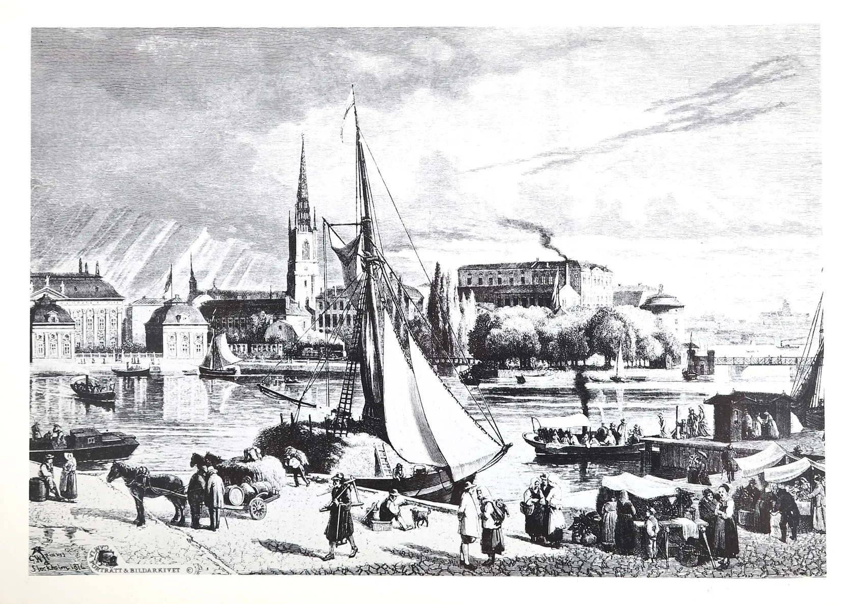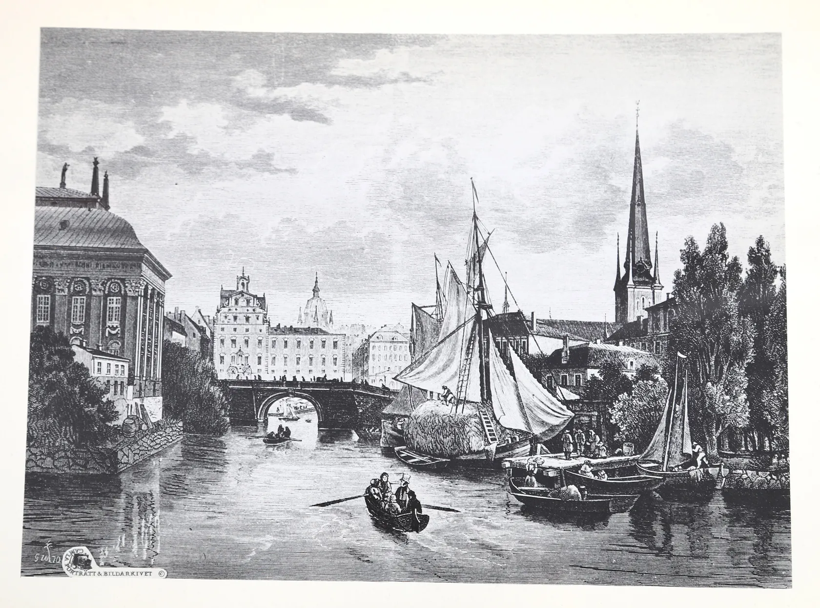 Reproduktioner, av grafiska blad, två stycken, Gustaf Wilhelm Palm, motiv från Stockholm, bildyta ca 16,5x23,5cm, i mapp.