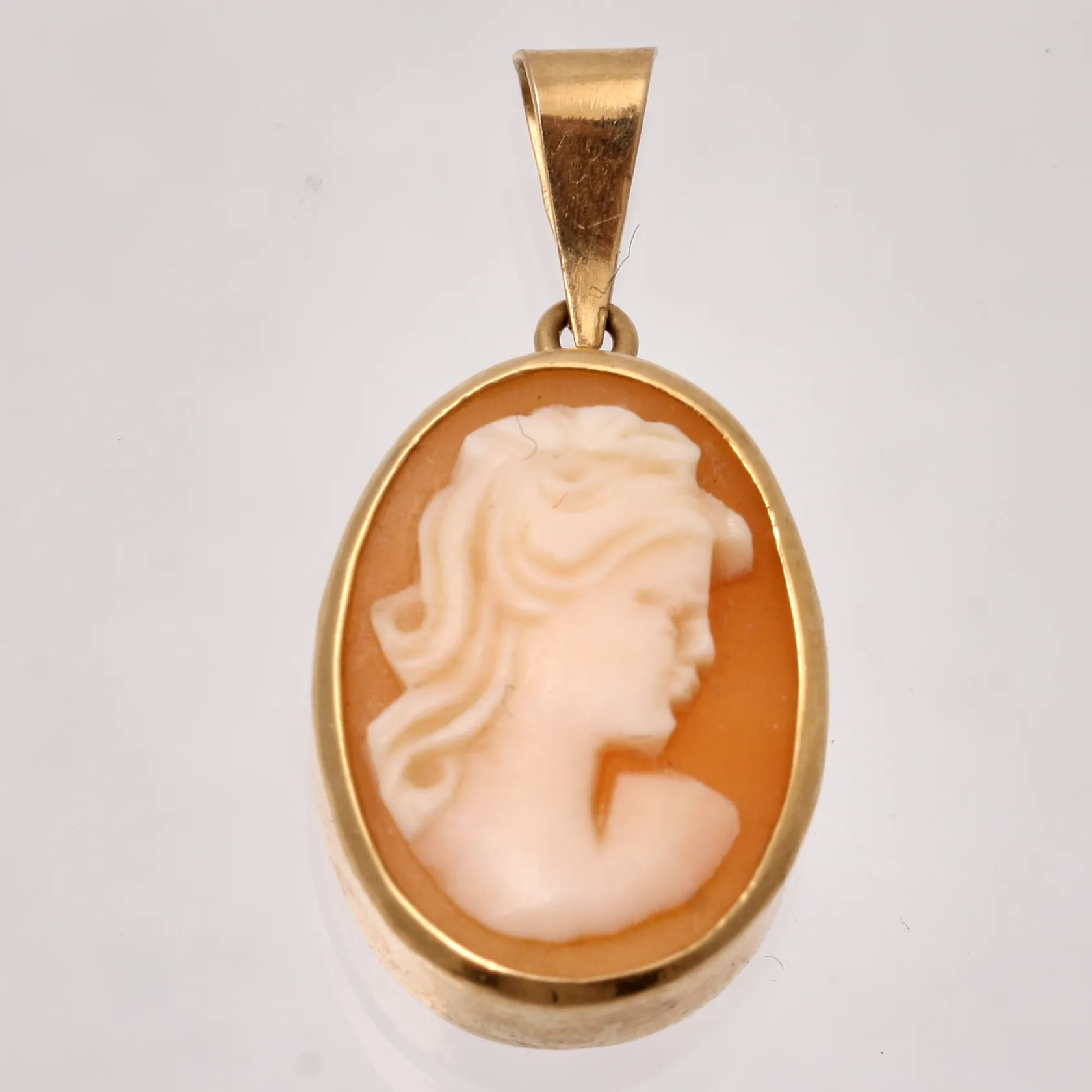 Hänge i 18K guld, mått 12,4x25,2mm, 1st kamé, mått 11,8x15,9mm, tillverkad av City Guld Ab Sune Karlsson,vikt 1,53g, Vikt: 1 g.