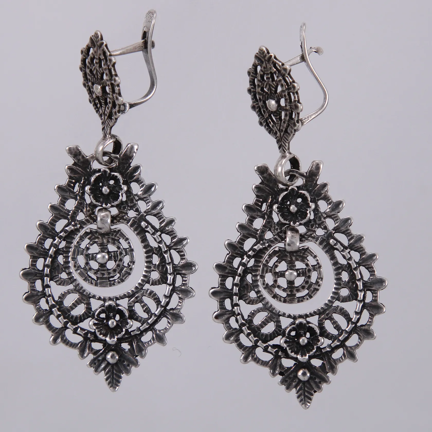 Ett par örhängen längd: ca 4,2cm bredd: ca 25mm 835/1000, silver Vikt: 3,2 g.