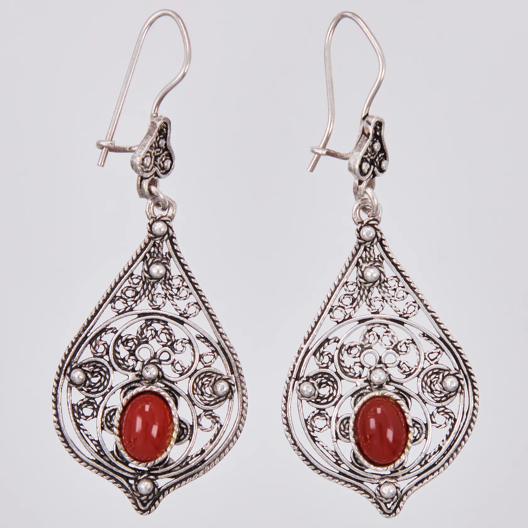 Ett par örhängen med röda stenar längd: ca 6cm bredd: ca 7-23mm 925/1000, silver Vikt: 9,9 g.