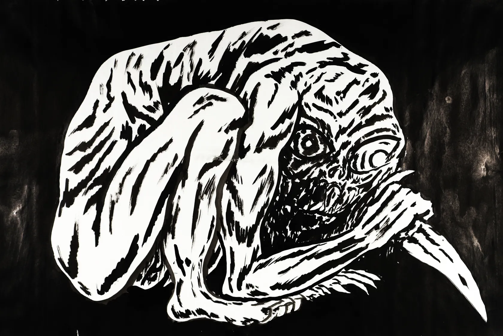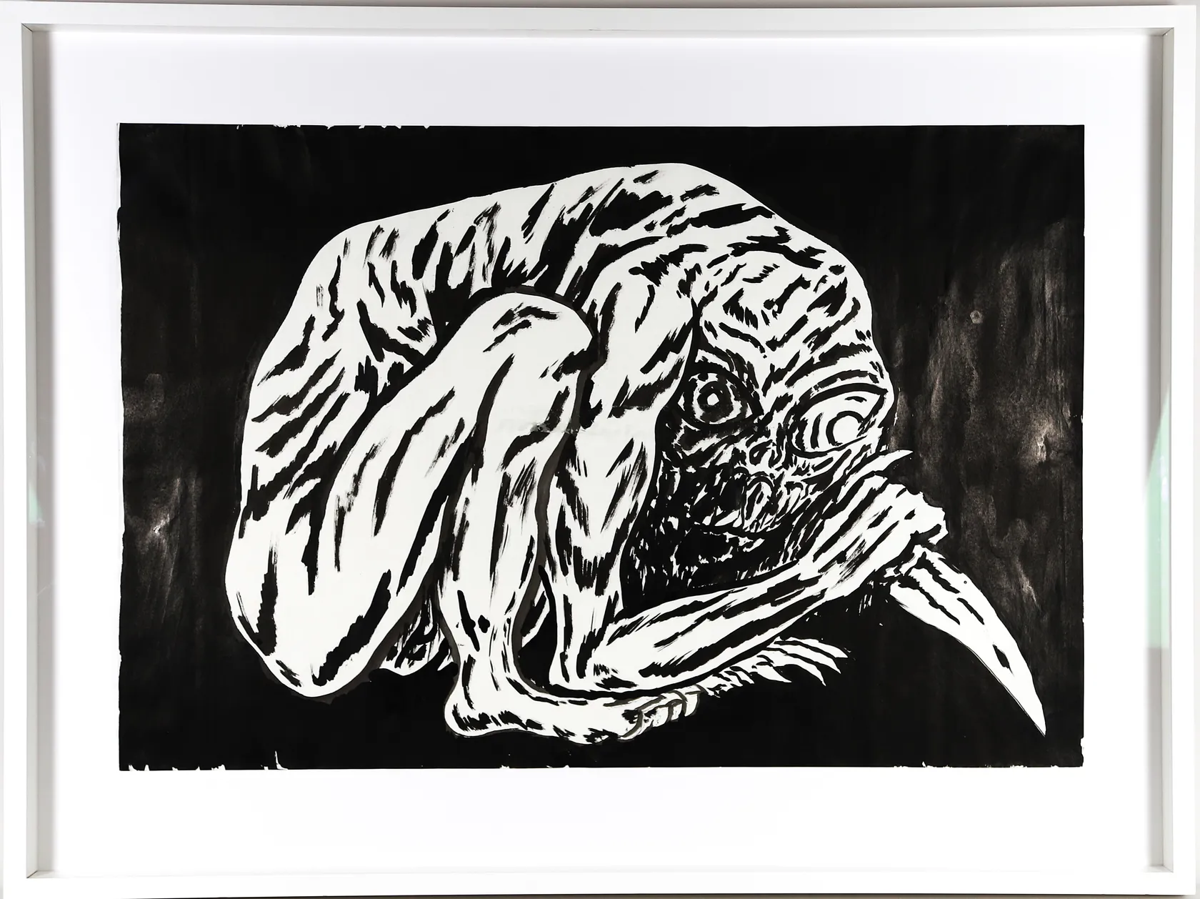 Tavla, Mat Brinkman, tusch på papper, a tergo signerad, titulerad "DAN`s" samt daterad 2008, kopia av signatur fäst på ram, bladstorlek 60x90cm, ej examinerad ur ram. Skickas med postpaket.