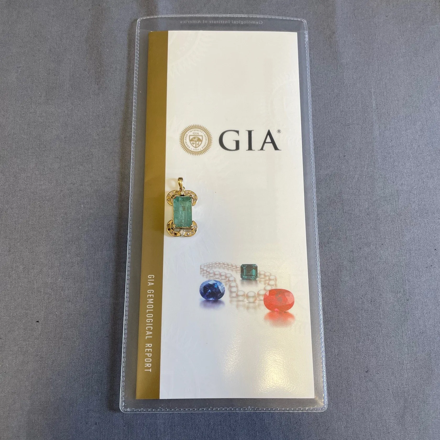 Hänge med smaragd 12.15ct, samt diamanter totalt ca 0,29ctv, smaragd med GIA certifikat, rapport-nr: 6234302741, mått 34x18mm ink. ögla, 14K guld Vikt: 7,8 g.