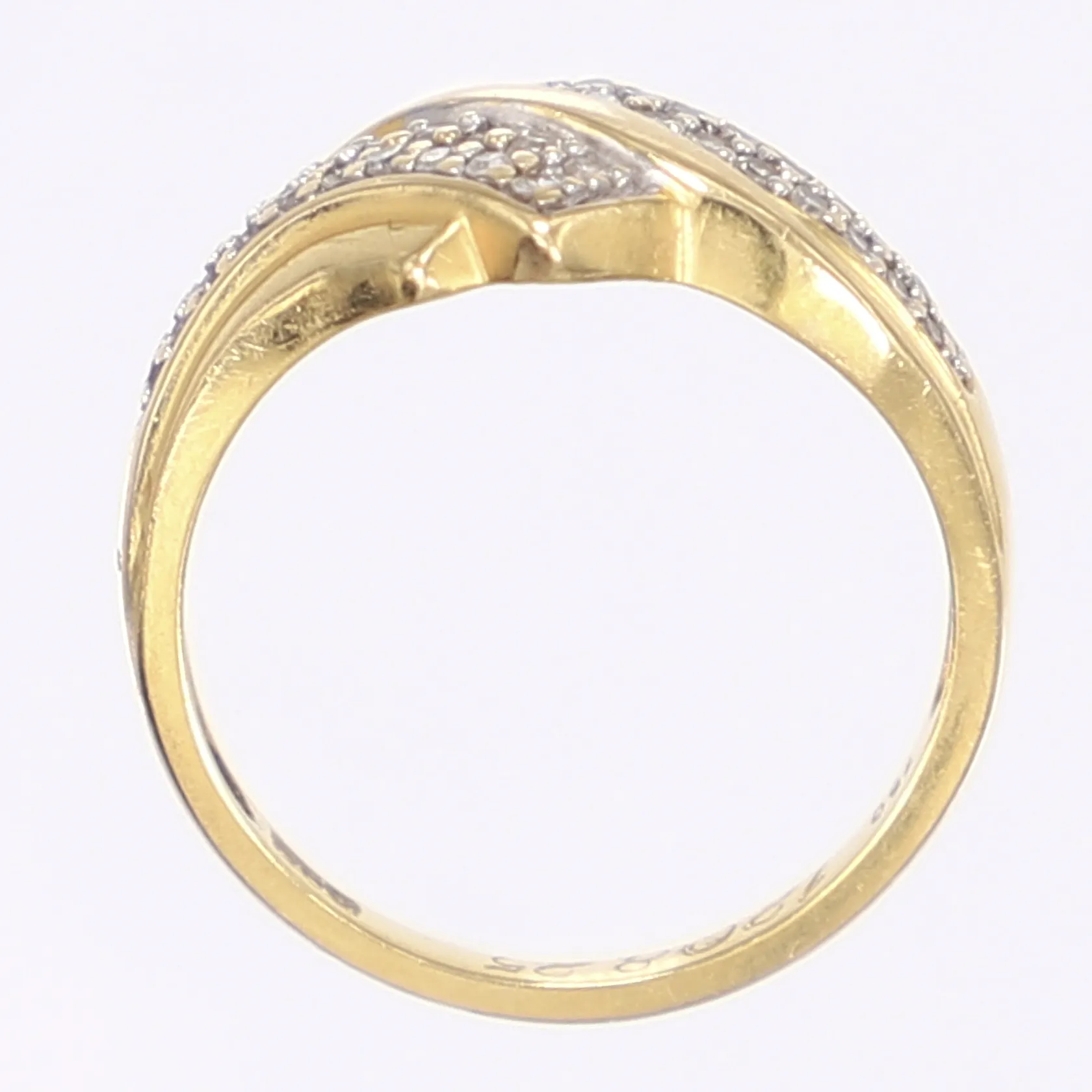 Ring med diamanter totalt ca 0,15ctv stl 15¾, bredd 2-11mm, gravyr, 18K Vikt: 3 g.
