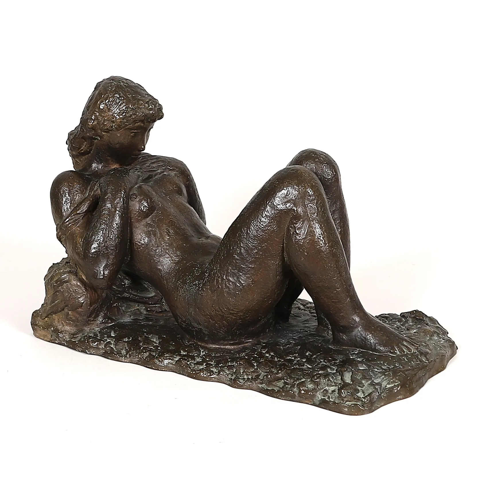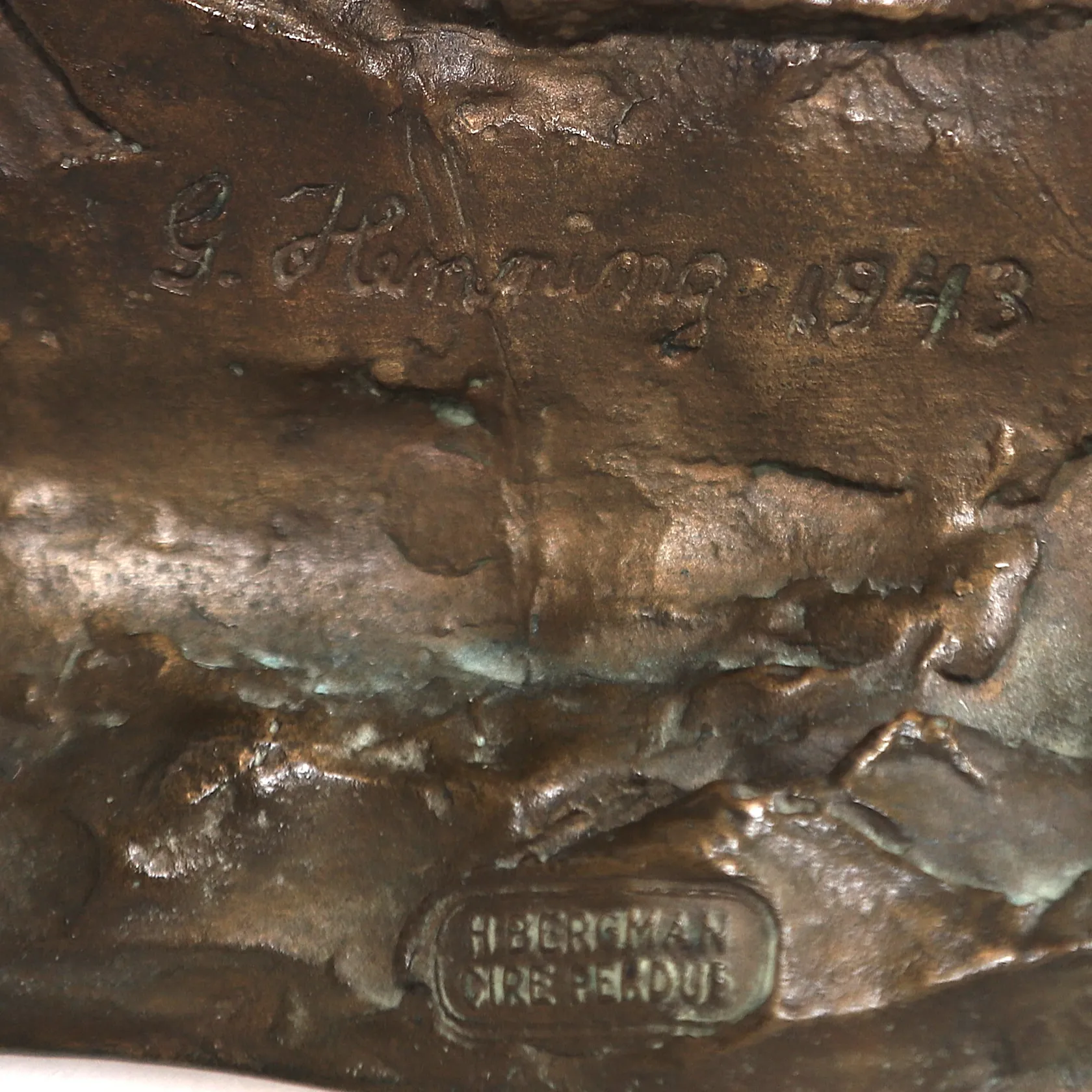 Skulptur, Gerhard Henning, "Sonja", brons, signerad och daterad 1943, gjutarstämplar H Bergman Cire Perdue, höjd 25,5 cm, längd 38cm. Skickas med postpaket. Omfattas av BUS-avgift.